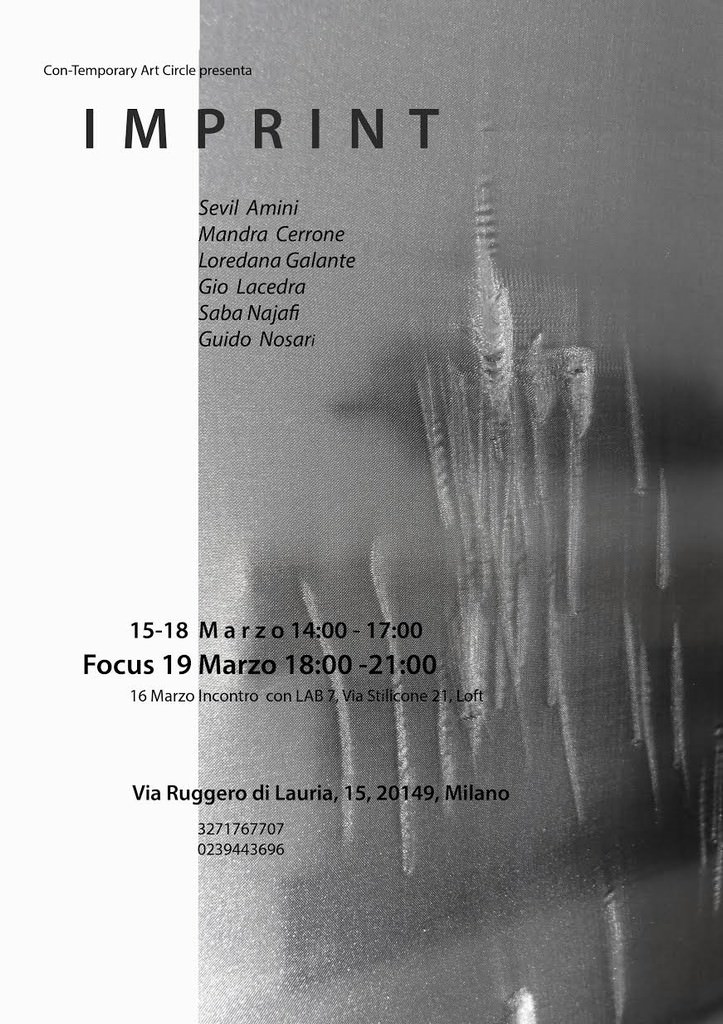 Dal 15 al 19 marzo 2016, per Studi Festival – il Festival degli Studi d’artista milanesi, lo Studio di Saba Najafi artista iraniana classe 1979, si apre al pubblico per una rassegna collettiva d’impronta femminile dal titolo "IMPRINT" con opere di pittura, grafica, video e performance di: