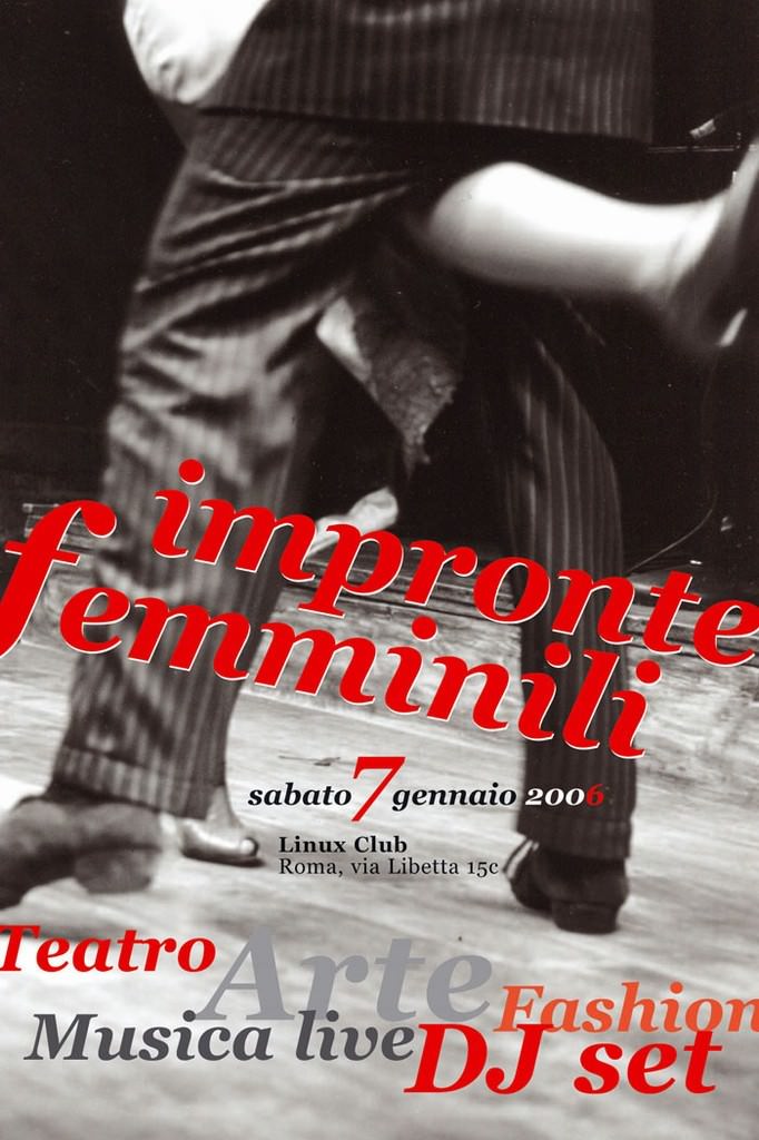 Arte, Moda, Teatro e Musica: questo il ricchissimo programma della serata “Impronte femminili” - organizzata da Stracantiere Eventi - che il 7 gennaio 2006 si svolgerà a Roma presso il Linux Club, via G. Libetta 15c.