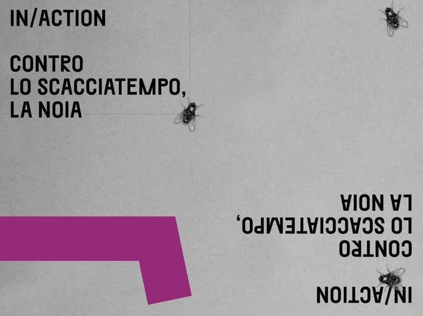 IN/ACTION. Contro lo scacciatempo, la noia è stata la risposta critica e curatoriale al tema "Usiamo ancora i microscopi come clave. I media tra esaurimento e chance estetica" proposto nel workshop tenuto nel mese di novembre 2017 da Maurizio Guerri, docente di Storia Contemporanea e Comunicazione Sociale presso l’Accademia di Belle Arti di Brera - Milano. IN/ACTION. Contro lo scacciatempo, la noia è lo straripamento di un flusso immaginativo senza tempo che si travasa ininterrottamente tra pratiche artistiche Fluxus e le opere di sei artisti viventi, producendo una piattaforma visiva di indagine critica sulla noia e le sue relazioni con la tecnologia. Group Show Benni Bosetto | Matteo Cremonesi | Aideen Doran | Mauro Folci | Dario Maglionico Rustan Söderling | John Cage | Dick Higgins | Jackson Mac Low | La Monte Young | Nam June Paik