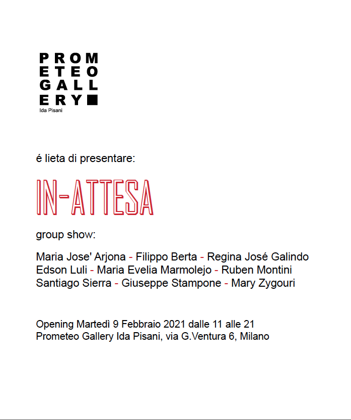 Martedì 9 Febbraio, dalle ore 11.00 alle 21.00, nella sede milanese di Prometeo Gallery Ida Pisani (in via Ventura 6) inaugura In-attesa, mostra collettiva che ripensa la migrazione umana contemporanea attraverso una conversazione tra nove “narratori”: Maria José Arjona, Filippo Berta, Regina José Galindo, Edson Luli, Maria Evelia Marmolejo, Ruben Montini, Santiago Sierra, Giuseppe Stampone e Mary Zygouri.