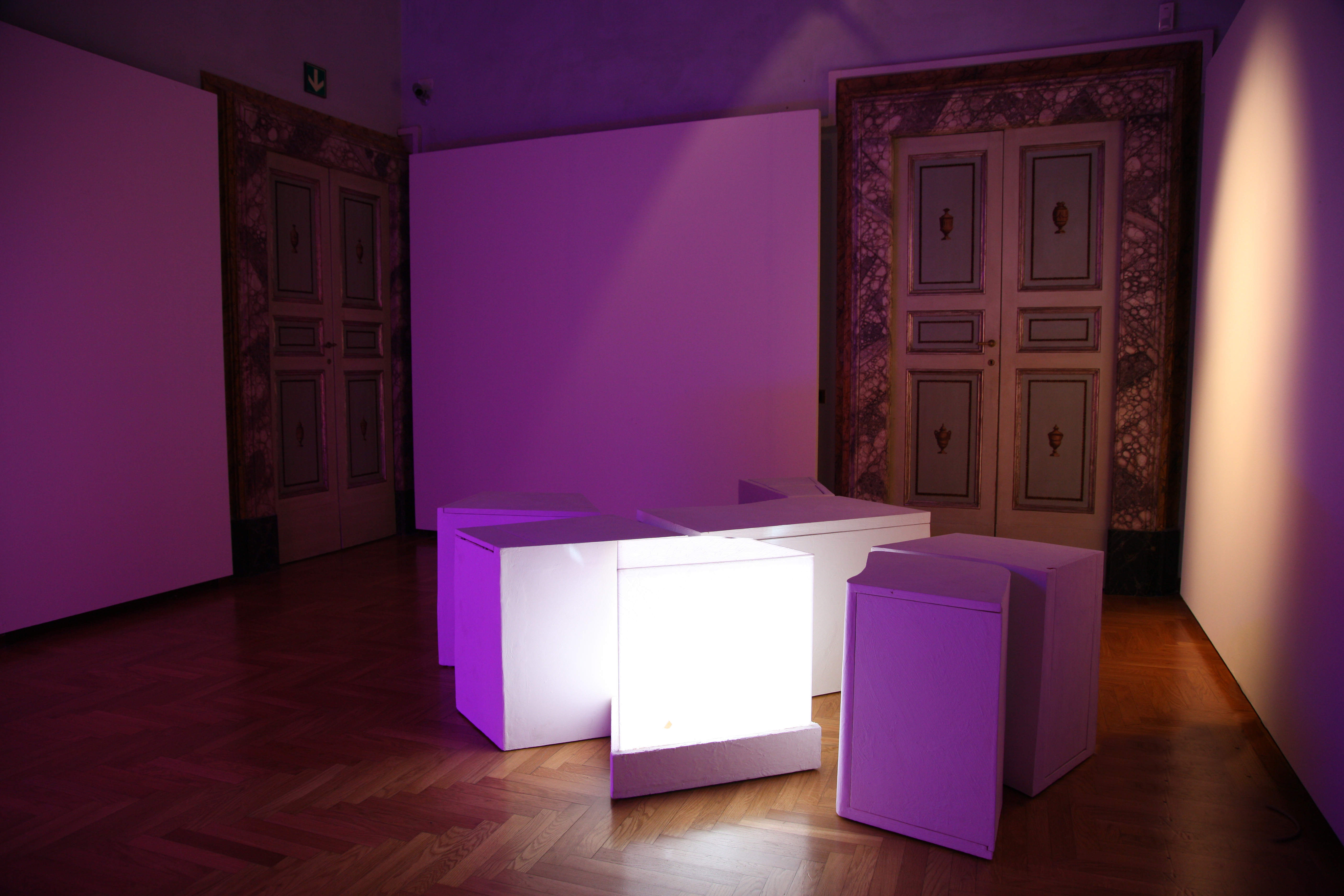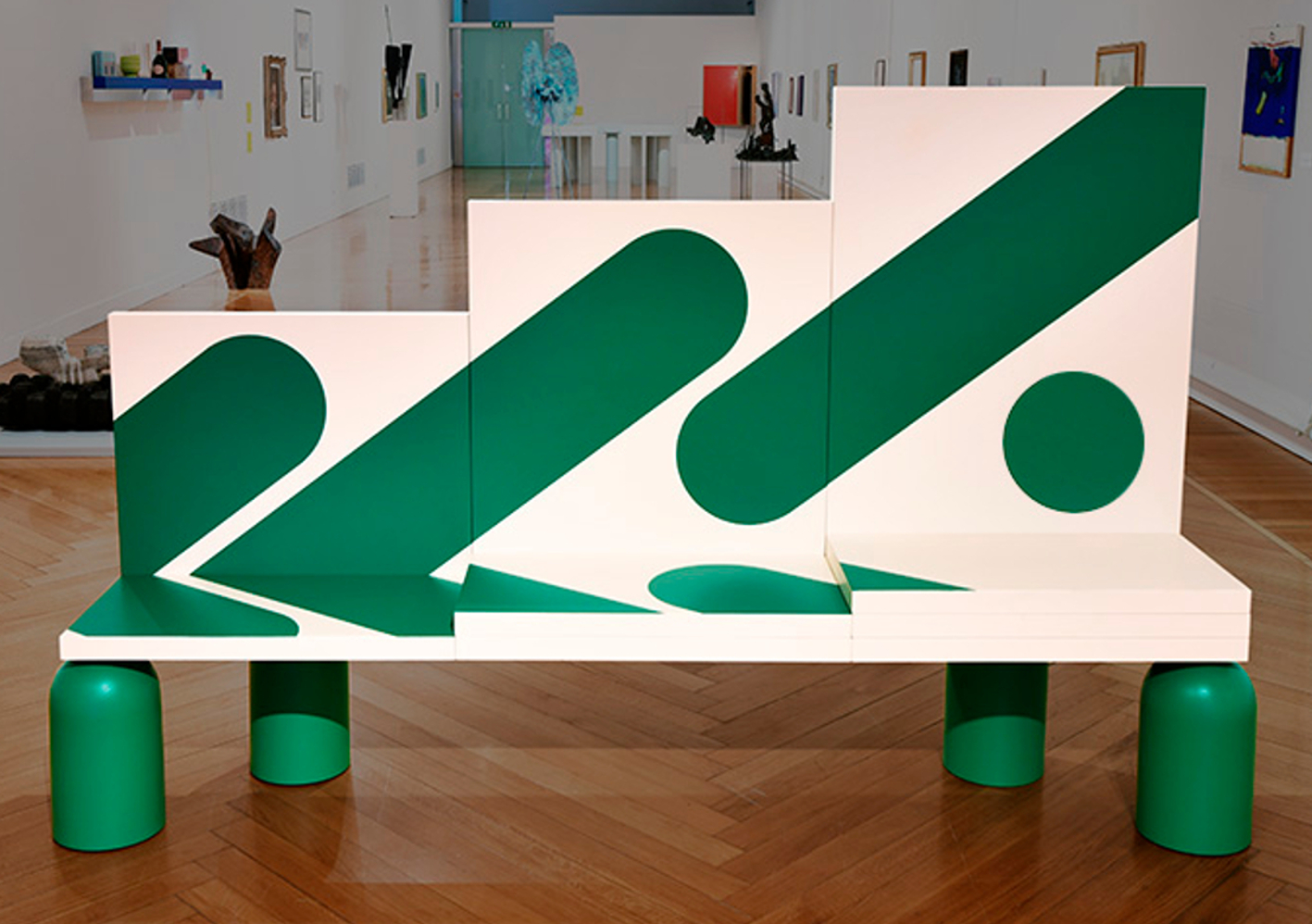 L’esposizione si inscrive in un percorso «gioioso, ironico e ad alto contenuto ludico», intonato all’epoca e ai movimenti artistici cui la progettazione dei prototipi si ispira: dallo Spazialismo al Minimalismo, passando per il New Dada e la Pop Art italiana, per un periodo compreso fra l’immediato dopoguerra e la fine degli anni ’70, fino al contemporaneo. Ne sono un esempio “Moustache”, l’appendiabiti ‘coi baffi’ in bronzo ossidato effetto verderame, eseguito in esclusiva dallo scultore Sergius Fstöhler, oppure la panchina “Brigida” composta da pannelli componibili montati su birilli, a imitazione della grafica riprodotta in seduta; così come il tavolo auto-illuminante “Arethusa” in cristallo retinato, supportato da un ensemble strutturale di tubi al neon, e la cabina spogliatoio “Cabin A”, con i suoi effetti ottici non immemori delle sperimentazioni optical degli anni Sessanta. Appesi a parete spiccano poi “Fragments”, sistema lineare di contenitori e mensole che funge anche da battery station e mimetizza i numerosi dispositivi mobili che costellano la quotidianità contemporanea, ed il vano portaoggetti “Retablo” che con il suo profilo piatto, lo sviluppo ad angolo retto ed il rosso acceso dell’anta rimanda maggiormente al concetto di opera d’arte che non a quello di semplice contenitore. Completa poi il parterre di prototipi d’arredo il tappeto d’arte “Ierierosolooggisoloero”, che allude alla dimensione del sogno e della notte per colore e impunture.