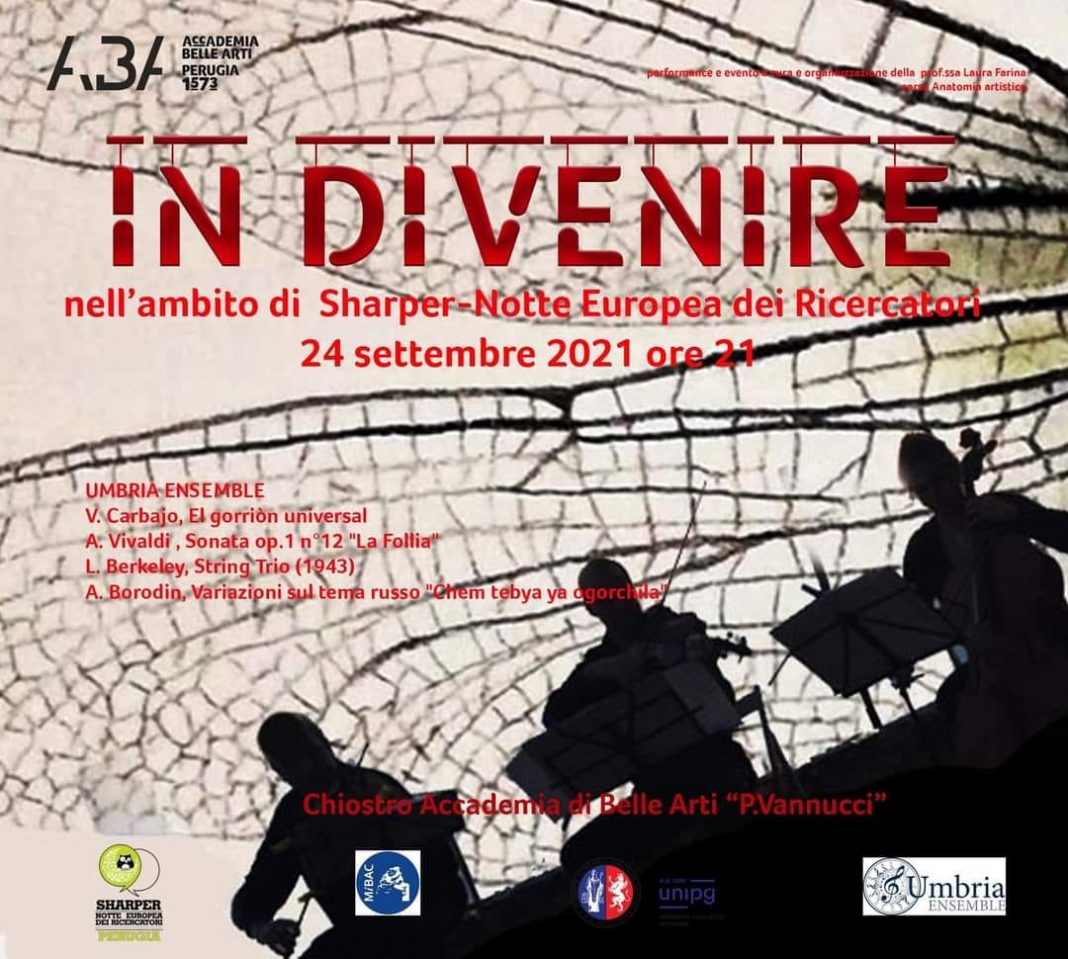 Azione in tempo reale tra musica dal vivo e disegno in collaborazione con l’UMBRIA ENSAMBLE.
