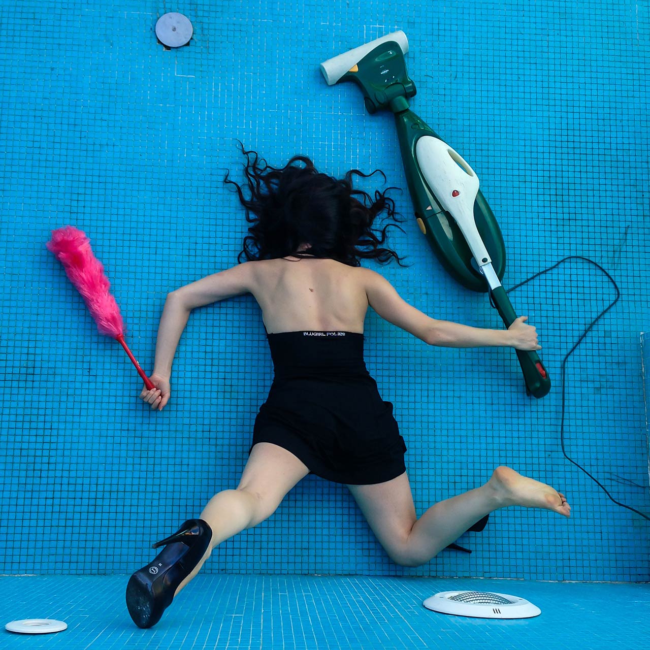 Le mie foto sono racconti di un mondo in caduta. Ogni scatto rivela di personaggi stremati che, come in un blackout improvviso della mente e del corpo, si lasciano schiantare senza alcun tentativo di salvarsi, impossibilitati dalla stanchezza della rappresentazione quotidiana del vivere , oppressi dall’apparire piuttosto che dall’esistere. Viviamo in un mondo di volti stravolti dalla chirurgia plastica con immagini fisse, stereotipate, immagini/oggetto, in cui la personalità si prostituisce ad un modello di marketing prestabilito. Io credo che la perfezione sia nell’imperfezione che si esprime nei contrasti forti, nella fragilità, nell’umanità che rende tutti gli individui diversi uno dall’altro. Nascondo il volto dei miei personaggi perché è il CORPO che parla di loro e le cadute sono il punto di non ritorno. Si dice che bisogna toccare il fondo per ricrearsi. Ebbene la CADUTA dei miei personaggi è il loro toccare il fondo che significa in sostanza LIMITE oltre il quale non si può più spingere il falso sé . Ognuno di loro salva un oggetto che trattiene in mano a simboleggiare proprio questa falsificazione. Insieme agli oggetti ad esprimere questa FINZIONE sono i vestiti, le pettinature, le locations e tutto quello che è visibile nella foto. Il CORPO frantumato invece esprime la VERITÁ che per manifestarsi deve appunto schiantarsi! Non uso mai manichini o pupazzi nei miei scatti ma attori professionisti in grado di interpretare con il corpo quello che non è visibile, perché voglio che sia visibile l’invisibile...
