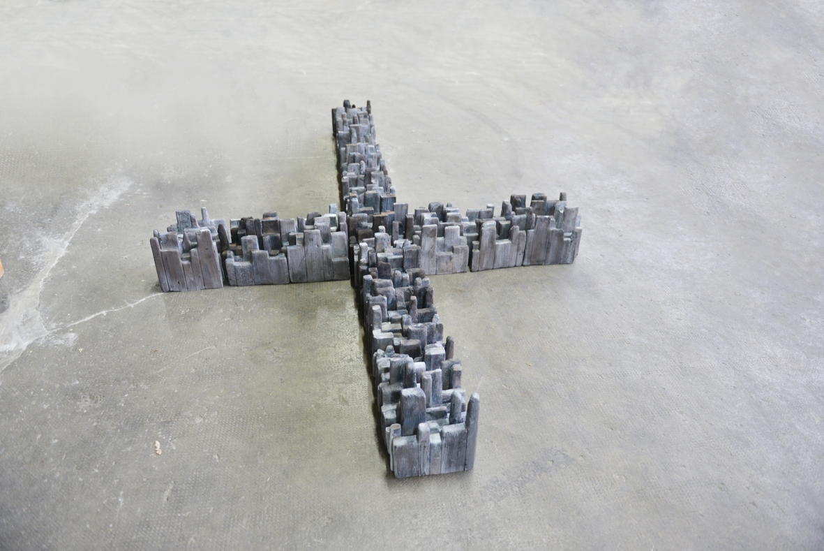 Le croci primordiali, realizzate con materiali poveri e grezzi, suggeriscono una sacralità arcaica, quasi dimenticata, tronchi, foglie, argille e pigmenti inerti richiamano riti ancestrali e il legame con una dimensione spirituale primitiva e autentica, in contrasto con l’opulenza del kitsch.