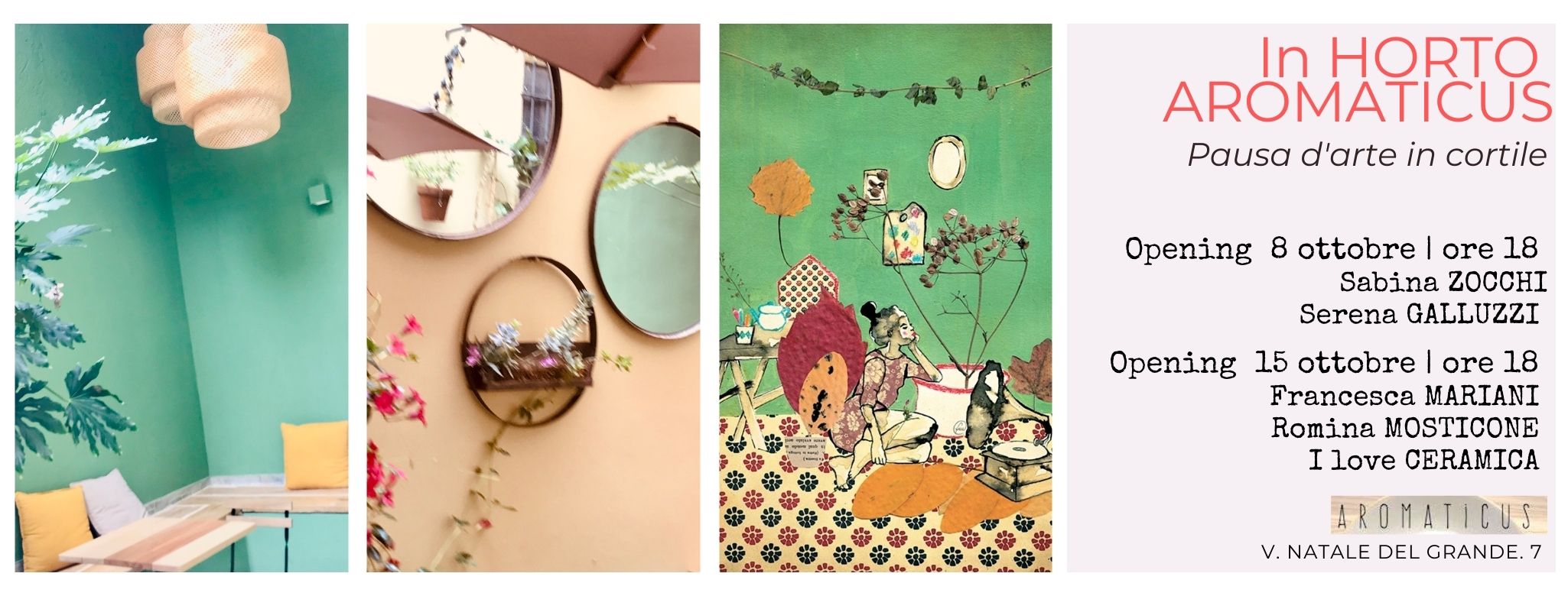 Nel cuore di Trastevere, un’oasi nascosta, il cortile di Aromaticus di Luca e Francesca, ospiterà tre inedite esposizioni d’arte che si concluderanno con la Roma Art Week il 27 | 31 ottobre. Tre esposizioni di artisti i cui lavori dialogheranno con gli spazi di ispirazione vagamente esotica e le piante aromatiche custodite nel green bistrot di via Natale del Grande.