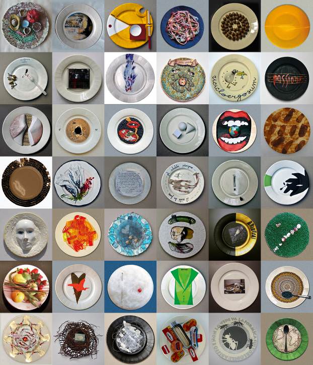 Ogni artista declina la sua riflessione sul cibo secondo il suo personale linguaggio o seguendo il filo di un pensiero che in qualche modo se ne discosta, concedendosi una sorta di divertissement in una deriva che può inclinare verso il linguaggio della pubblicità, o del riciclo, o della poesia verbo-visiva, o neo-pop, onirico o naif o documentale … ma tutti condividono la volontà di evitare i toni della retorica e della celebrazione, rischio sempre in agguato nell’affrontare un tema di tali implicazioni e risvolti sociali e politici.