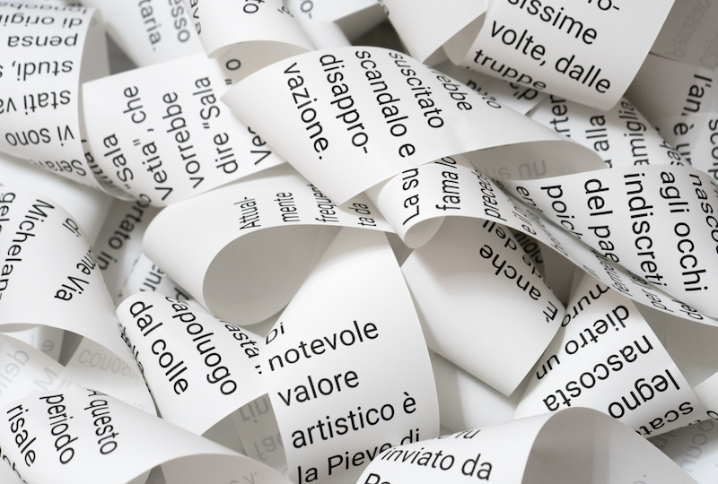 La macchina, con il suo ritmo e ticchettio ipnotico e il delicato graffio della carta termica, diventa una performance che incanta attirando lo spettatore nel mondo dell’artista.