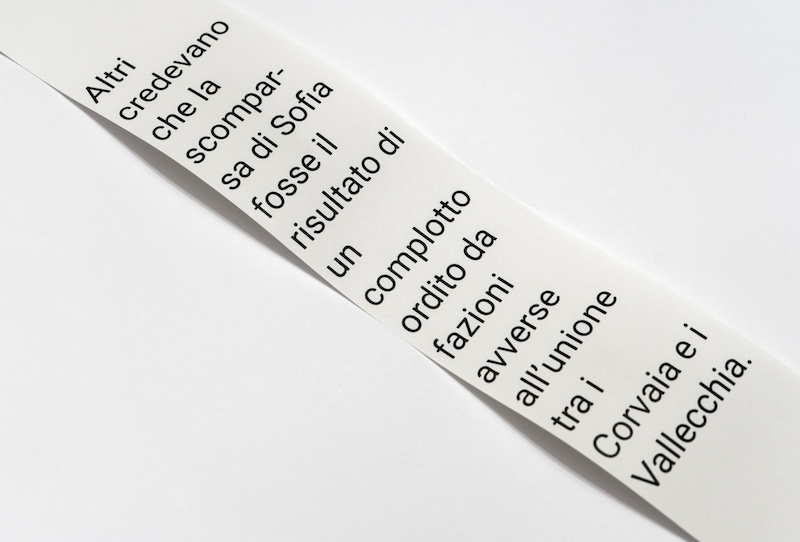 L'installazione, realizzata da Camilla Gurgone, presenta una macchina che genera meticolosamente la storia di Seravezza intrecciando fatti ed eventi storici documentati con elementi immaginati dall’artista. La narrazione viene trascritta su carta termica, un materiale conosciuto per la sua fragilità; il testo, infatti, svanirà in circa due anni, simboleggiando così la natura effimera della memoria, della tradizione e della storia. Una metafora del delicato equilibrio tra la conservazione del passato e l’inevitabile decadenza della conoscenza nel tempo. La storia stessa è un arazzo di eventi storici documentati e storie immaginarie, unite insieme per creare un’esplorazione che stimola il pensiero sulla natura della verità e sull’importanza di preservare il patrimonio culturale e tradizionale.
