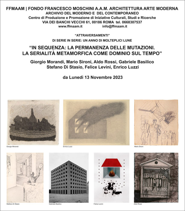 Questa ulteriore tappa all'interno dell'intero ciclo di mostre, già prefissato nella sua futura complessa articolazione, vede coinvolti sette protagonisti della cultura artistica e architettonica del '900 italiano.
