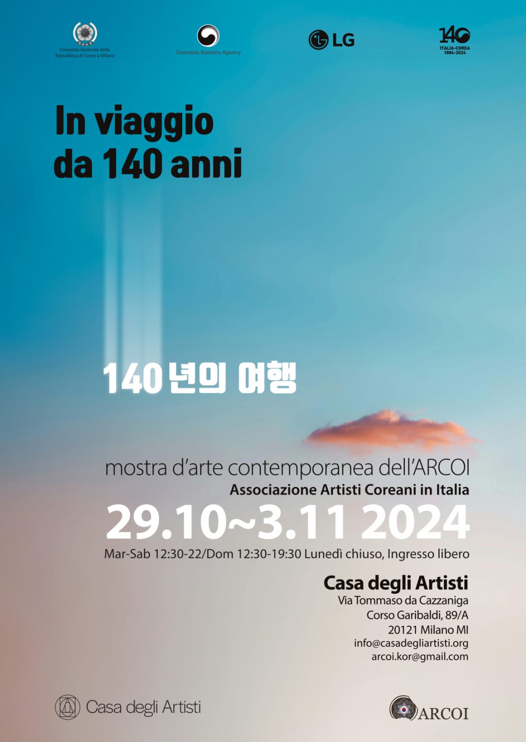Il 2024 segna il 140° anniversario delle relazioni diplomatiche tra Corea e Italia. La mostra celebra il legame di 140 anni tra i due paesi attraverso il tema del “viaggio”, esprimendo l’identità coreana degli artisti coreani che vivono e lavorano in Italia.