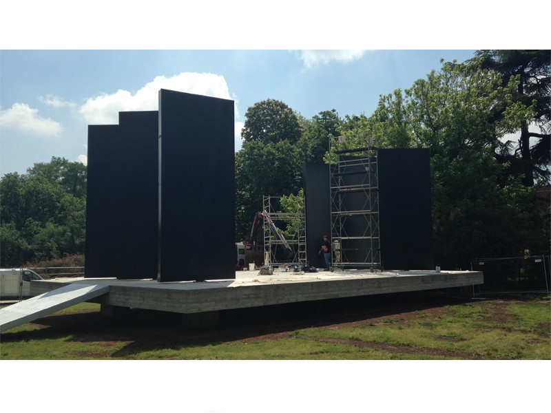 L’opera si presentava come una struttura palcoscenico ridotta all’essenziale. Era