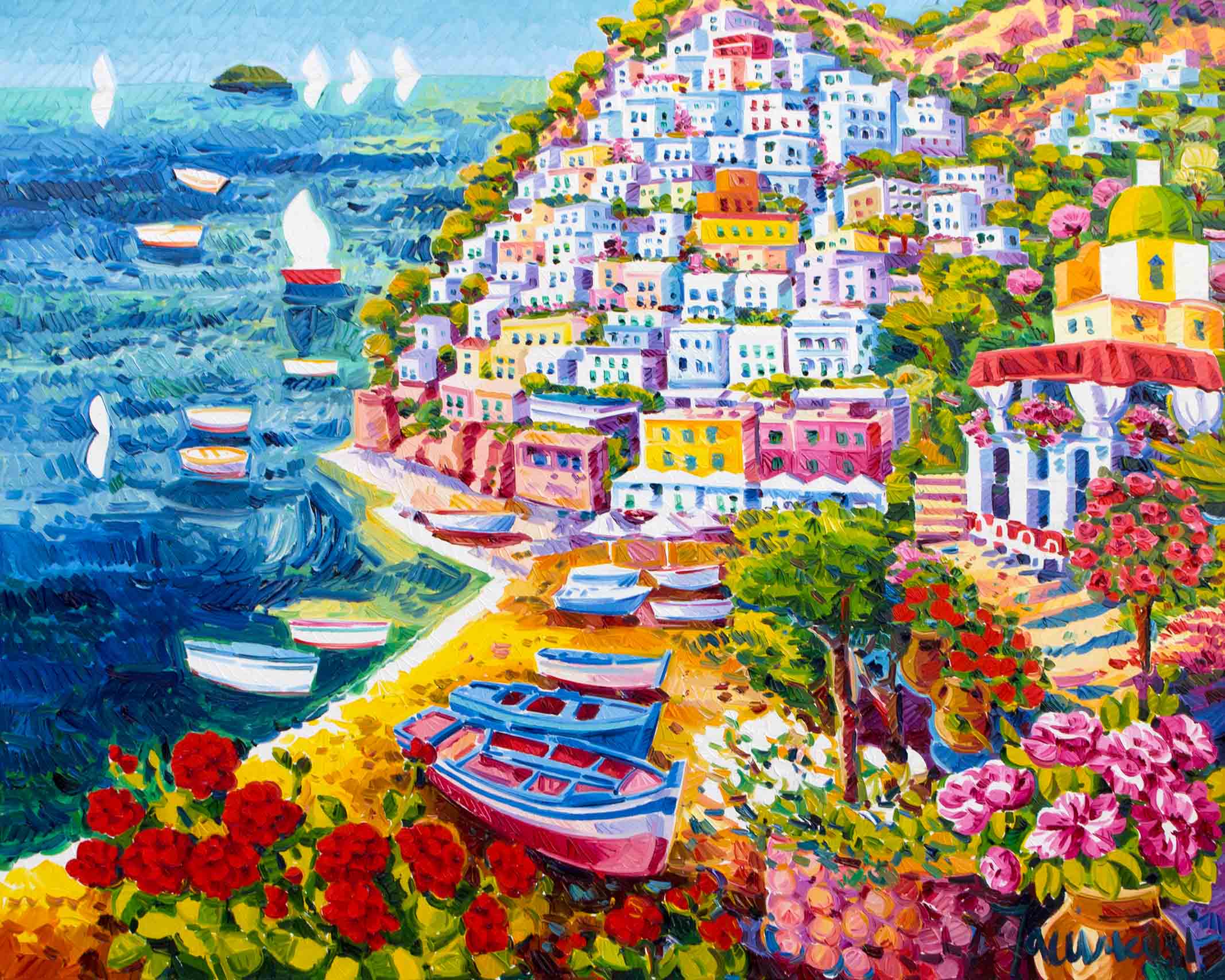 Athos Faccincani nasce a Peschiera del Garda il 29 Gennaio 1951. Negli anni ‘70 il giovane artista comincia a farsi notare per l’intensità espressiva delle sue figure. Gli viene così commissionata una mostra sulla Resistenza presso la Gran Guardia di Verona che gli frutterà la Medaglia di Cavaliere della Repubblica consegnatagli dal Presidente della Repubblica Sandro Pertini. Nel 1980, dopo un profondo cambiamento interiore, Faccincani si lascia ispirare dalla Natura che diventa protagonista indiscussa della sua pittura che ormai ha conquistato sia l’amore del pubblico che l’attenzione della critica grazie ai colori vivaci e inconfondibili. Da allora l’ascesa del Maestro del Colore si è estesa ben oltre i confini nazionali, tra le sue esposizioni internazionali più importanti quelle di New York, Boston, S. Antonio, Miami, San Francisco, Chicago, Los Angeles, Londra, Vienna, Tokyo, Madrid, Zurigo, Amburgo, Monaco, Sofia, Hong Kong, Singapore e Montecarlo. Innumerevoli anche i premi di cui è stato insignito durante la sua quarantennale carriera, fra gli ultimi il premio Personalità Europea consegnatogli a Roma ed il Leone d’Argento al Narnia Festival e le collaborazioni, fra tutte quella con la trasmissione Geo Rai3.