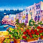 Le tele di Faccincani sono una sinfonia di colori saturi e vibranti. La sua pittura idealizza i paesaggi mediterranei, trasformandoli in luoghi di bellezza eterna. La luce in Faccincani è onnipresente: è calda, avvolgente, quasi divina, dona ai suoi paesaggi una vitalità straordinaria comunicando ottimismo e gioia di vivere. La sua arte è una celebrazione della natura e della vita, un invito a contemplare il mondo con uno sguardo positivo e armonioso.