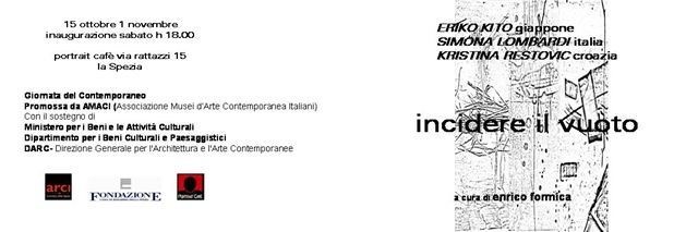 Naturalmente poi le singole personalità aggiungono tratti distintivi: Erico vince la sfida del vuoto contrapponendo, in uno spazio così arioso e prospettico da sembrare una quinta teatrale, l’autorità e l’ordine di una lenta cascata di segni sottili a drammatiche macchie, selvagge esplosioni di vita tenute a freno a fatica. I lavori di Simona sono sempre metaforicamente en plain air, manifestano un’acuta sensibilità verso gli agenti atmosferici, la cui azione incessante, capricciosa e imprevedibile simboleggia l’incertezza delle condizioni esistenziali, la pericolosa felicità del nomadismo. Kristina affronta il vuoto con cautela e sottigliezza, pochi determinanti segni che attraversano lo spazio da una parte all’altra come esploratori che marcano un territorio ostile ed ignoto, ma destinato ad essere sottomesso alla forza di volontà dell’artista.
