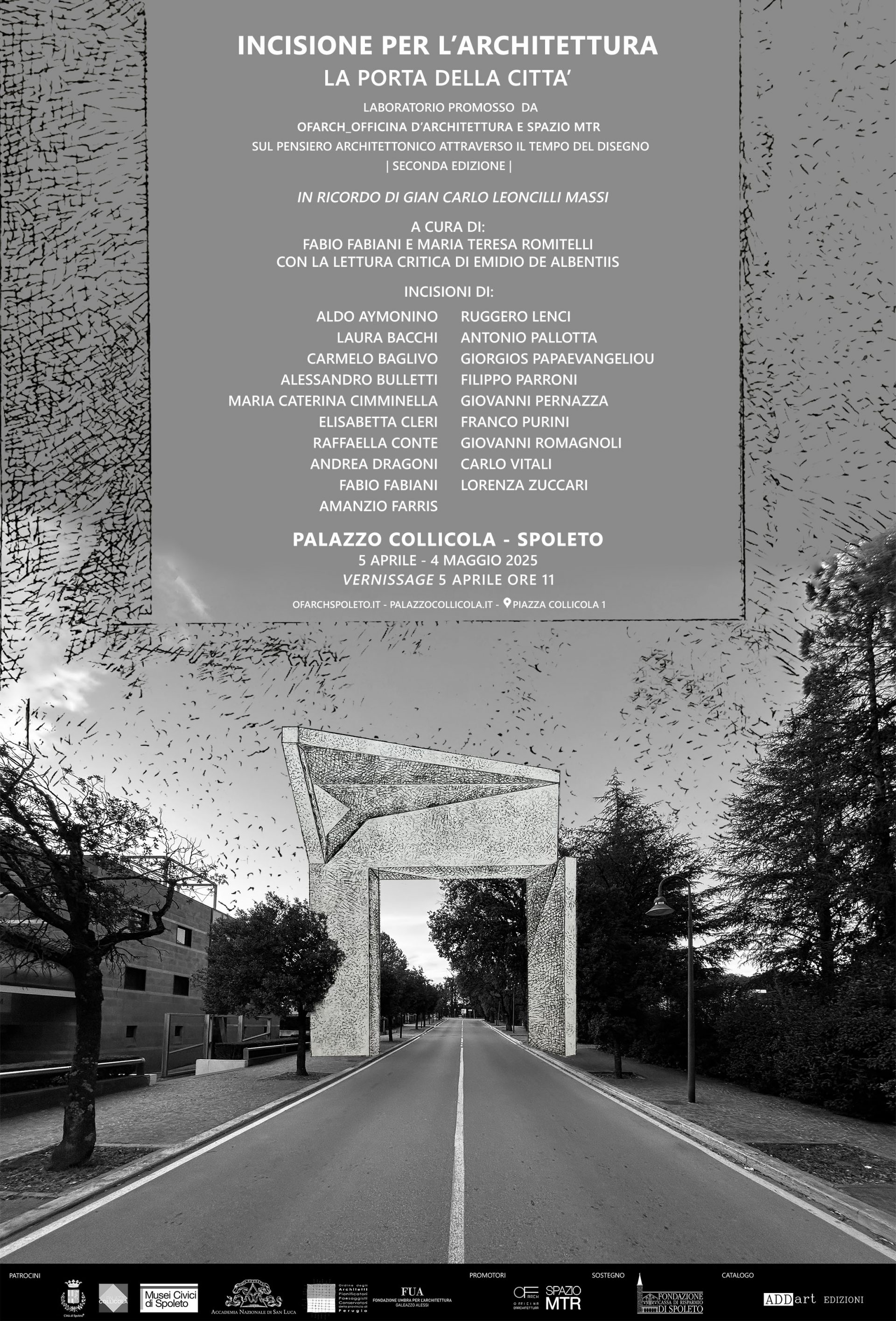 La mostra INCISIONE PER L’ARCHITETTURA, “La Porta della Città” – promosso da OFARCH Officina d’Architettura e SPAZIO MTR, a cura di Fabio Fabiani e Maria Teresa Romitelli, con la lettura critica di Emidio De Albentiis, vede in mostra 19 architetti incisori.