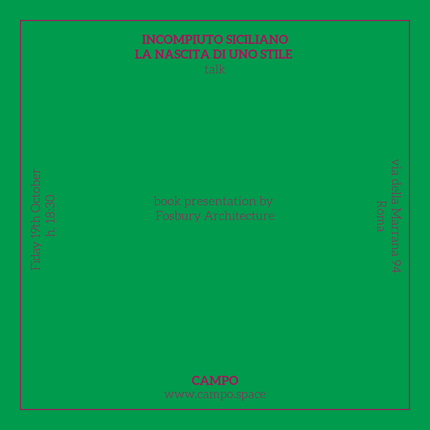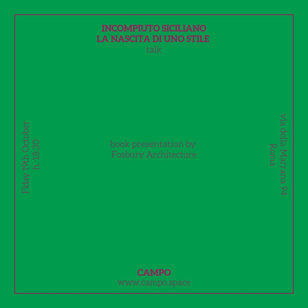 Fosbury Architecture racconterà a CAMPO l’esperienza del libro Incompiuto Siciliano, la nascita di uno stile. Il collettivo ci parlerà del loro coinvolgimento nel progetto, che li ha portati quest’anno a collaborare con Manifesta 12.
