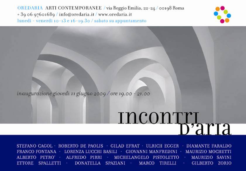 La galleria OREDARIA Arti Contemporanee di Roma, dopo sei anni di attività, celebra il suo percorso espositivo rendendo omaggio agli artisti che sono intervenuti finora nello spazio di via Reggio Emilia, e a quelli che lo faranno in un futuro immediato, con una mostra di forte valenza emotiva in cui saranno esposti lavori che documentano la storia della galleria. Dall’alchimia di Gilberto Zorio ai quadri specchianti di Michelangelo Pistoletto; dalla sensibilità di Ettore Spalletti all’immaginario concettuale di Maurizio Mochetti; dallo studio della luce di Alfredo Pirri al linguaggio metafisico di Marco Tirelli; dall’astrazione di Franco Fontana alla struggente malinconia del mondo industriale di Ulrich Egger; dai luoghi della scomparsa di Gilad Efrat all’istantaneità temporale di Stefano Cagol; dalle immagini estatiche e spirituali di Giovanni Manfredini ai piani di realtà subliminali di Lorenza Lucchi Basili; dalla ricerca dell’identità di Roberto De Paolis ai lavori in chewingum di Maurizio Savini e dalla maturità filosofica di Diamante Faraldo alle ricerche sul corpo di Alberto Petrò e Donatella Spaziani.