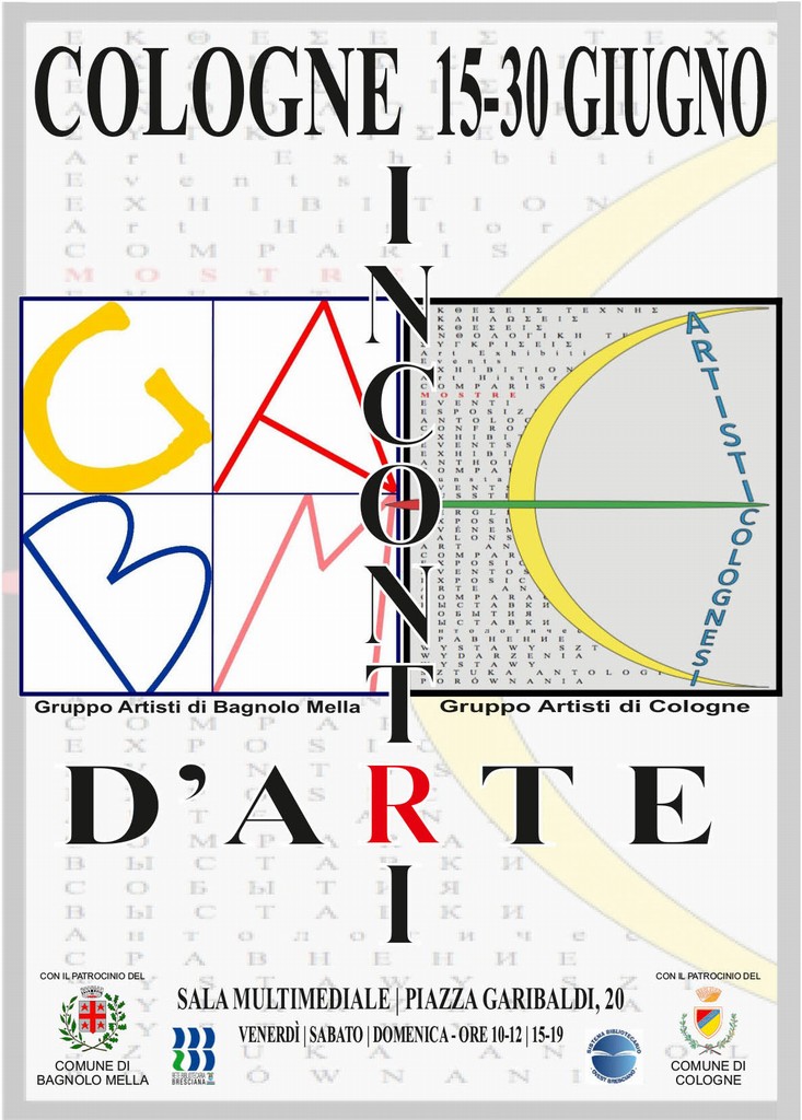 Nelle sale multimediali del centro culturale mostra d’arte INCONTRI d’ARTE. Artisti Colognesi e Artisti Bagnolesi GABM, in una sorta di gemellaggio, daranno vita al 1°confronto tra Artisti di Gruppi.
