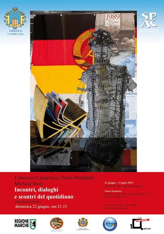 La Pro Loco di Candelara ha il piacere di invitare la cittadinanza e gli appassionati d’arte a partecipare all’inaugurazione della terza rassegna d’arte contemporanea “CandelarArte” dal titolo: “Incontri, dialoghi e scontri del quotidiano”. Una mostra che propone le opere di tre giovani artisti pesaresi: Paolo Manfredi; Michele Mori; e l’eugubino Francesco Caparrucci. L’inaugurazione, alla presenza dei tre artisti e del curatore Lorenzo Fattori, avverrà domenica 22 giugno 2014, alle ore 21.30 presso il giardino di San Francesco (all’interno del castello di Candelara, alle spalle della chiesa diroccata); in caso di maltempo, si terrà presso la sede della Pro Loco.
