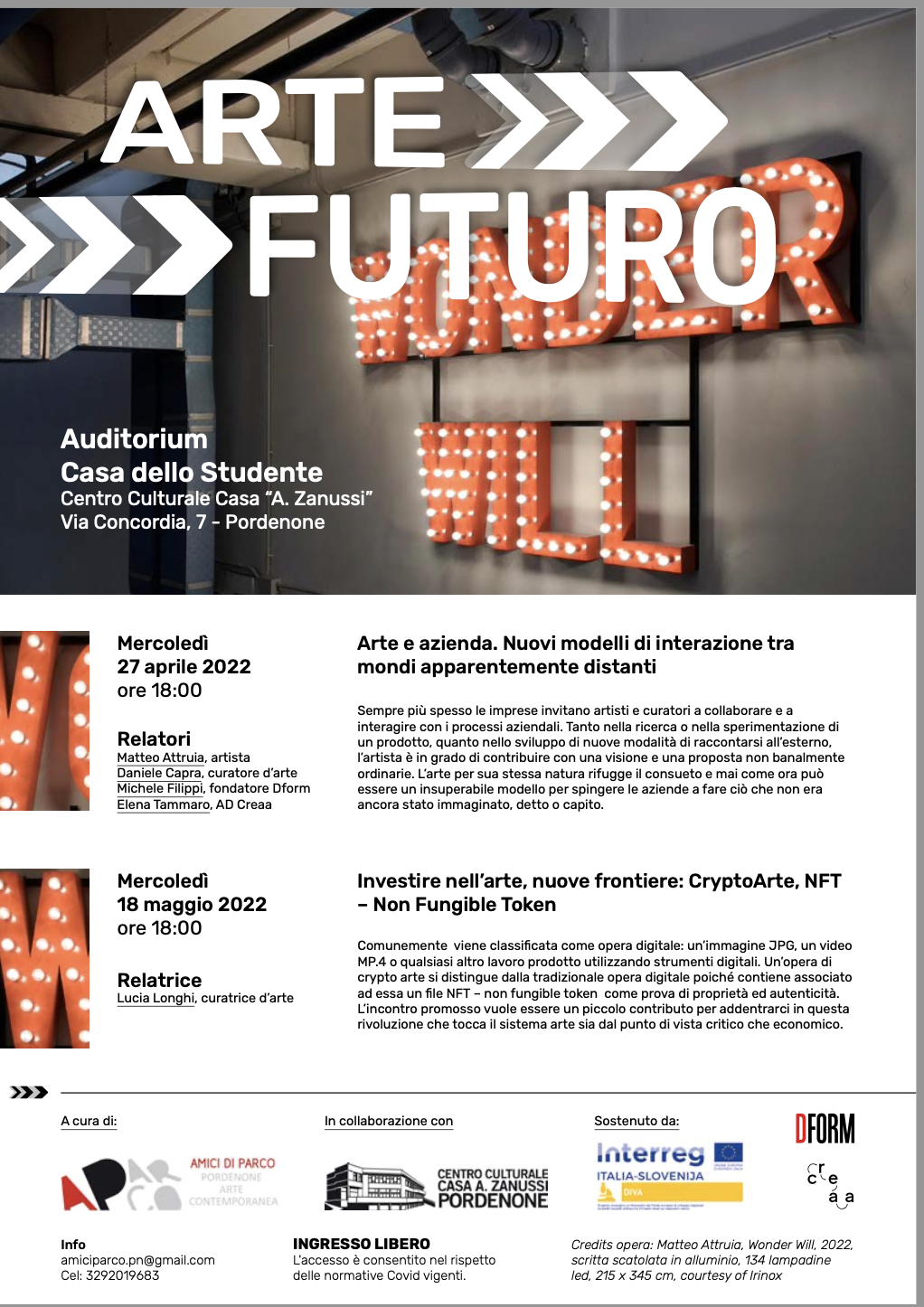 La presentazione del prototipo del dispositivo nato dalla necessità di curatori, architetti e conservatori, che si trovano a gestire, movimentare e valorizzare importanti collezioni d’arte”, sarà ospitata oggi 27 aprile, alle 18.00, nel Centro culturale Casa “A.Zanussi” in Via Concordia, 7 a Pordenone dopo essere stato illustrato in anteprima a Rimini, in occasione della mostra nella città romagnola degli artisti friulani Mara Fabbro e Alberto Pasqual, con la curatela di Matteo Sormani e quindi a Trieste presso la galleria Econtemopary. La nuova tappa, sarà oggi, 27 aprile a Pordenone durante l’incontro “Arte e azienda. Nuovi modelli di interazione tra mondi apparentemente distanti “, a cura dell’Associazione Amici del Parco, vedrà coinvolti l’artista Matteo Attruia, il critico d’arte Daniele capra, Michele Filippi fondatore di DForm, Elena Tammaro, Ad di Creaa. Sempre più spesso infatti, le imprese invitano artisti e curatori a collaborare e a interagire con i processi aziendali. Tanto nella ricerca o nella sperimentazione di un prodotto, quanto nello sviluppo di nuove modalità di raccontarsi all’esterno, l’artista è in grado di contribuire con una visione e una proposta non banalmente ordinarie. L’arte per sua stessa natura rifugge il consueto e mai come ora può essere un insuperabile modello per spingere le aziende a fare ciò che non era ancora stato immaginato, detto o capito.