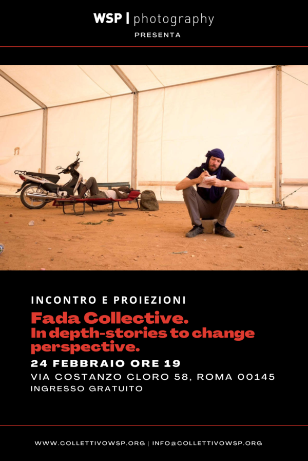 Venerdì 24 febbraio dalle ore 19 avremo il piacere di ospitare al WSP Photography il collettivo Fada, un gruppo di fotografi, video-maker e giornalisti freelance, che ci parleranno del loro lavoro e dei loro progetti.