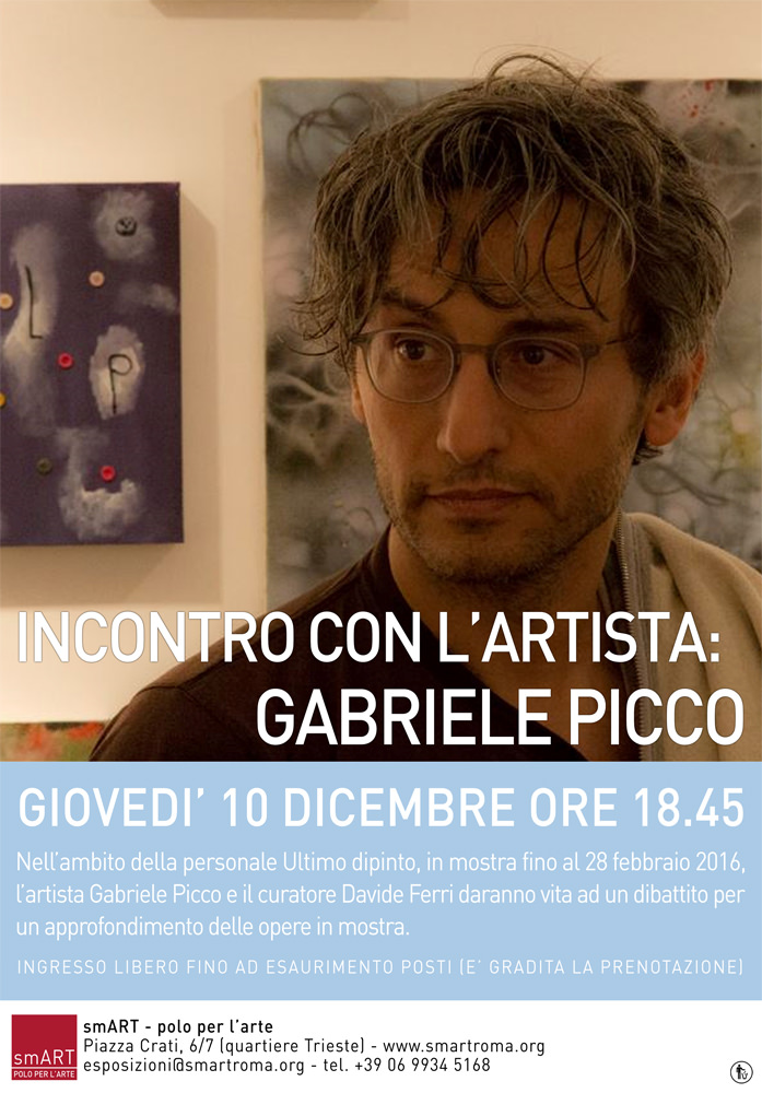 smART – polo per l’arte prosegue i suoi appuntamenti con gli artisti protagonisti delle mostre del proprio spazio espositivo, organizzando un incontro con Gabriele Picco assieme al curatore Davide Ferri.