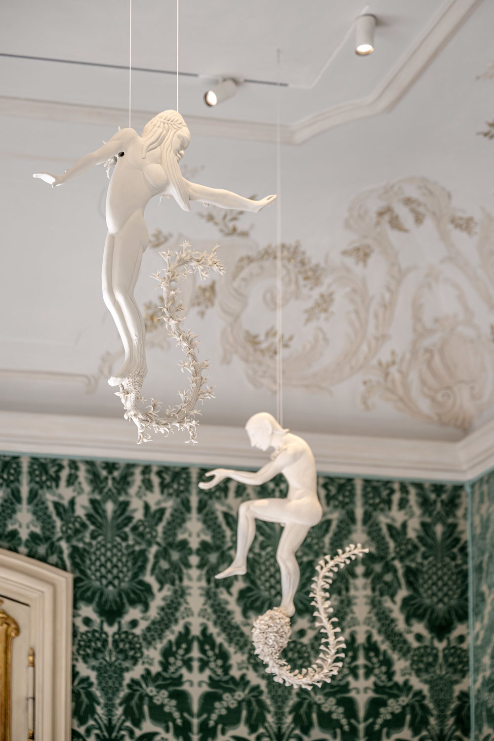 Al centro della conversazione, e del volume recentemente pubblicato, è l’intervento originale realizzato per il Museo d’arte della Fondazione Luigi Rovati, dove le opere popolano tre spazi: l’atrio del palazzo, con quattro maschere d’ispirazione etrusca; la sala d’ingresso del Piano Nobile, con quattro personaggi dai tratti antichi che si muovono in una danza circolare, sospesi nel vuoto, mentre sulla parete una coppia di uccelli si protende verso l’esterno; l’ampia facciata che dà sul giardino, animata da rilievi di figure antropomorfe, animali ed elementi floreali.
