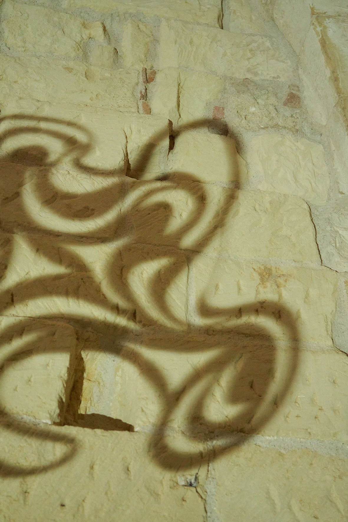 Una nuvola di carta invade lo spazio sacro della chiesetta in via Madonna degli Studenti di Eresie Pellegrine. Ritagli di ombre imprimono la pietra, creando un tempo di sospensione e attesa. Al buio, il visitatore dotato di torcia interagisce con lo spazio illuminando l’installazione, generando relazioni tra carta, pietra e ombra. “Aerophonia”, una composizione musicale inedita di Neil Leonard, accompagna il visitatore in questo viaggio tra presente e passato, in uno spazio in cui le presenze che abitano chiesa possono mostrarsi e giocare con la luce, nel tempo della contingenza del “qui e ora” in cui avvengono le magie.