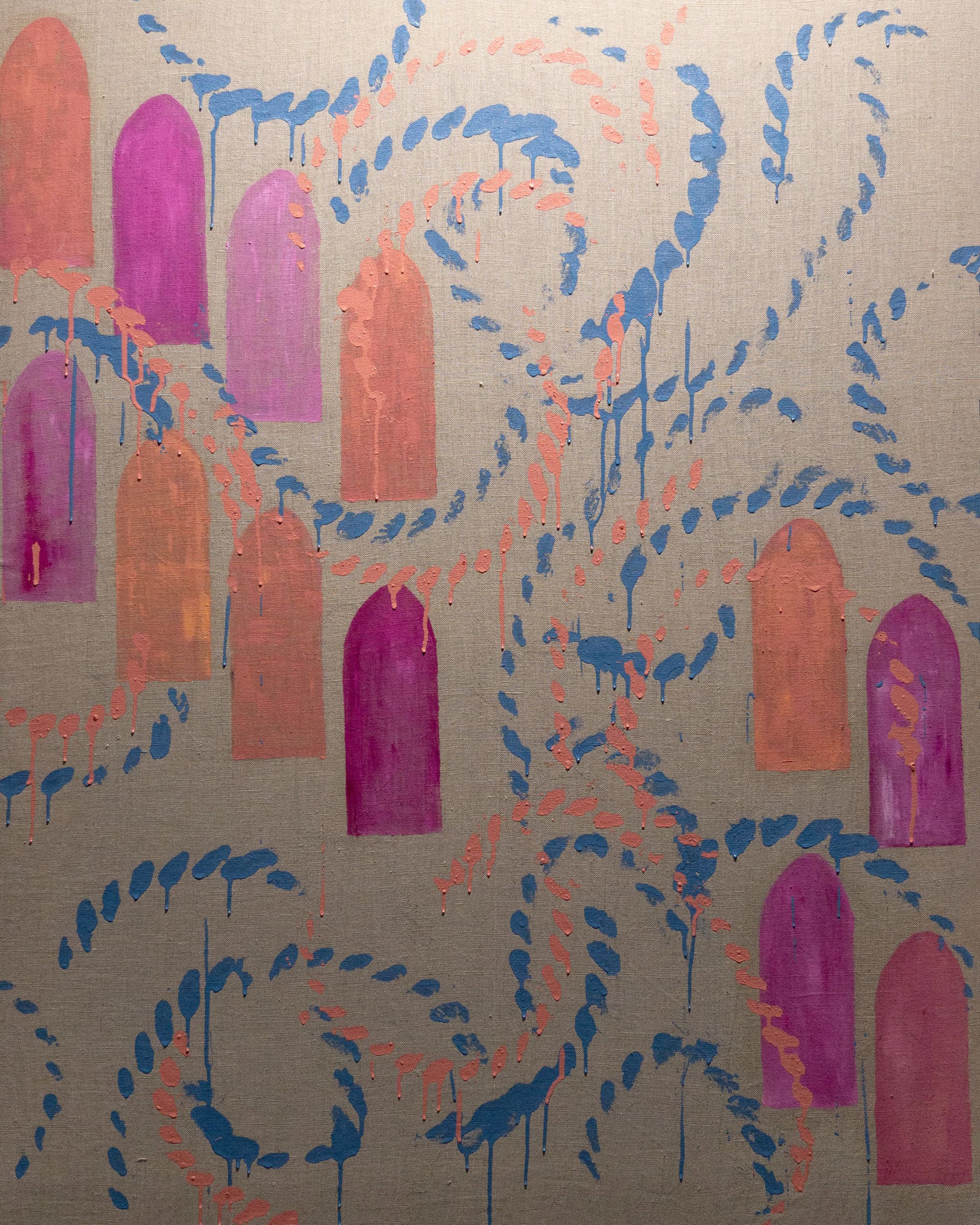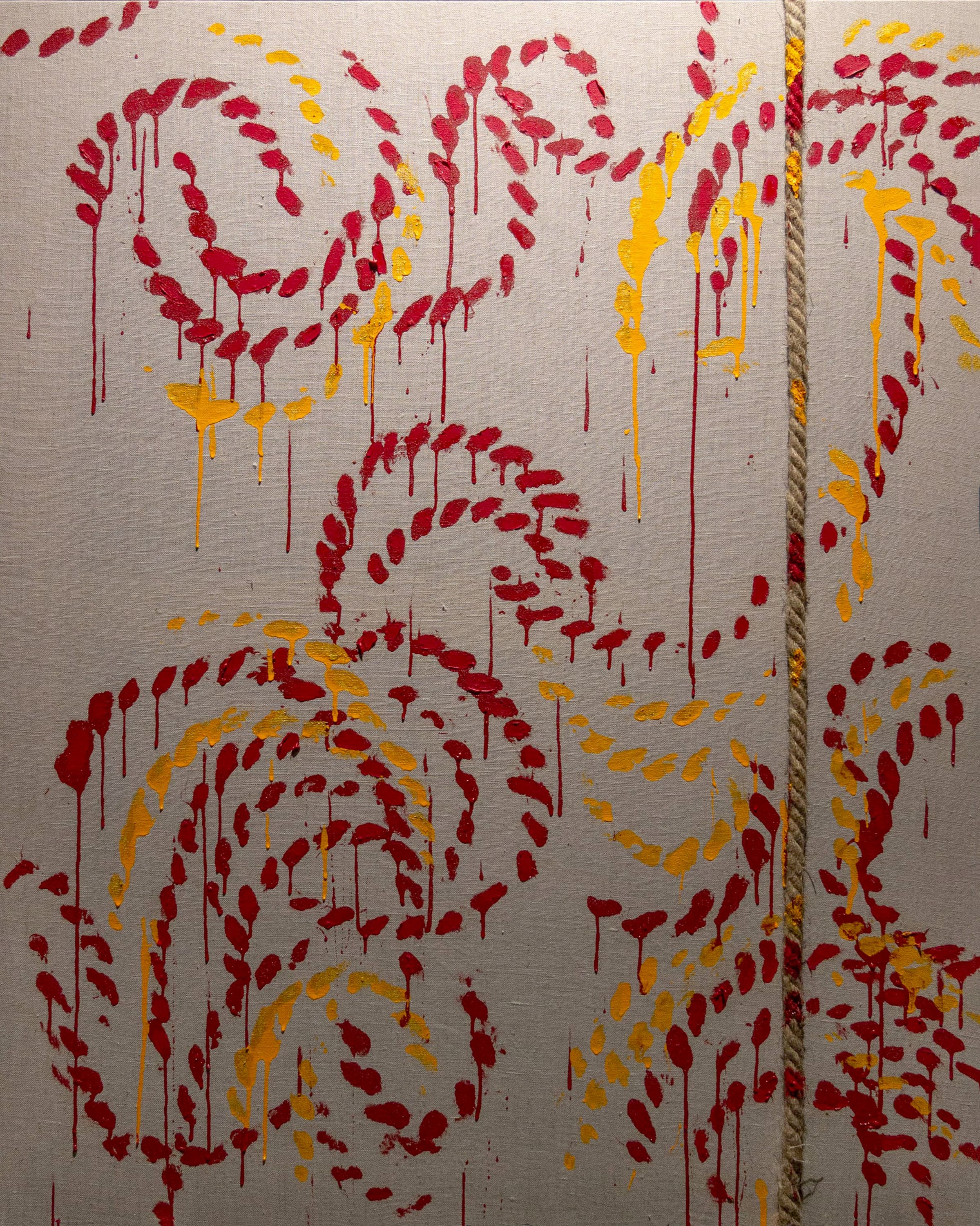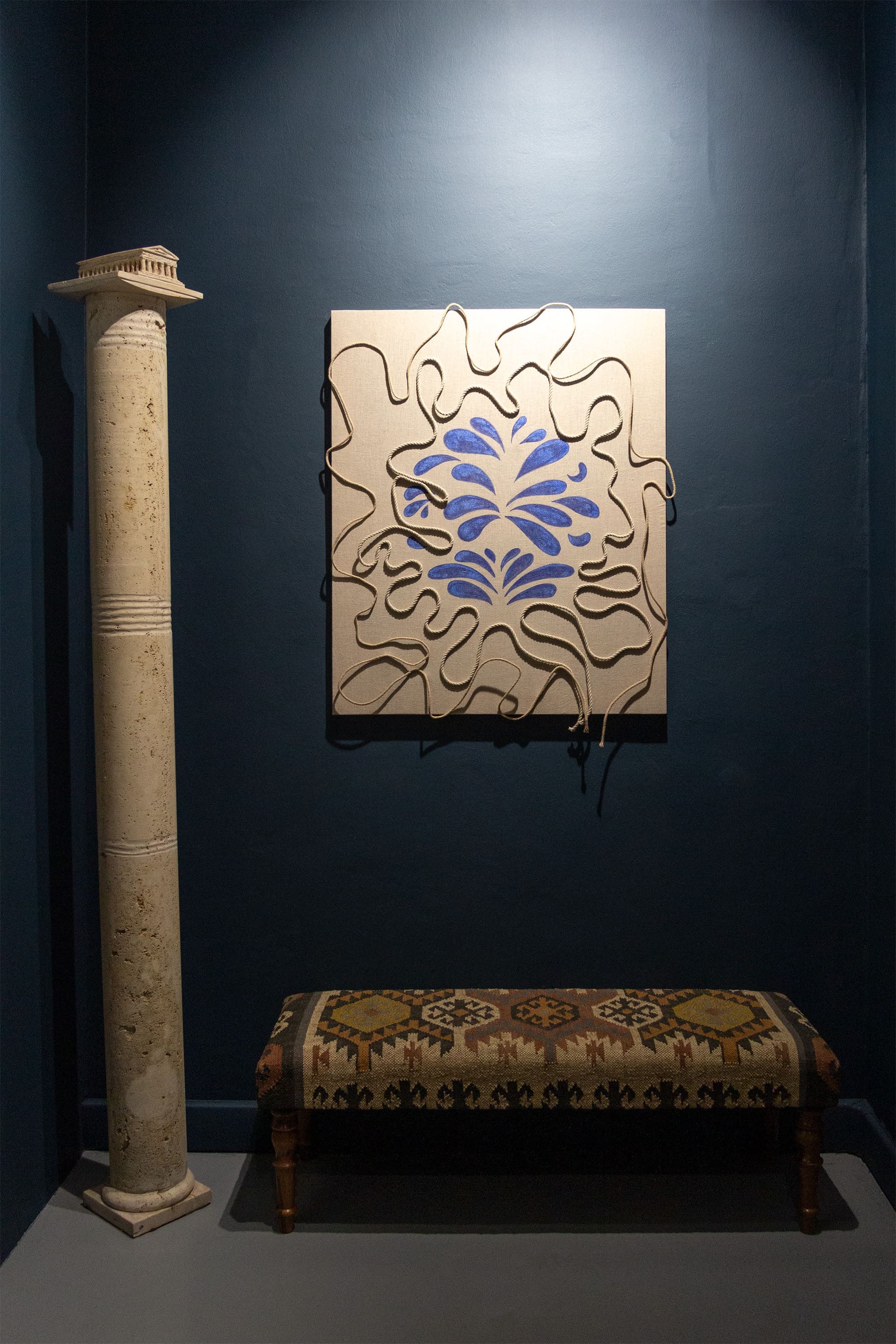significato profondo nella coscienza, nella cultura, nella storia e nella religione indiana. Per questa seconda esposizione da Arte in Salotto - la prima è stata “Body Bondage” a novembre 2023 - la nuova serie di opere presenta, oltre alla particolarità dei colori, l’utilizzo di tele di lino grezzo. Le corde, simbolo di liberazione del corpo dalle costrizioni e fil rouge del linguaggio artistico di Cassola, talvolta fungono da cornice, come nel caso degli specchi realizzati a mano e successivamente fusi in bronzo, anch’essi presenti in nuovi esemplari in mostra, e talvolta diventano lo strumento espressivo per imprimere il colore sulla tela, in una traduzione diretta di una energia fisica, emotiva e mentale sul supporto. Quello di Cassola è infatti un lavoro “dall’interno all’esterno”. Per l’esposizione, Cassola interviene inoltre su manufatti ufficiali e atti di proprietà su carta di riso ritrovati presso gli archivi del Palazzo Reale di Jaipur.
