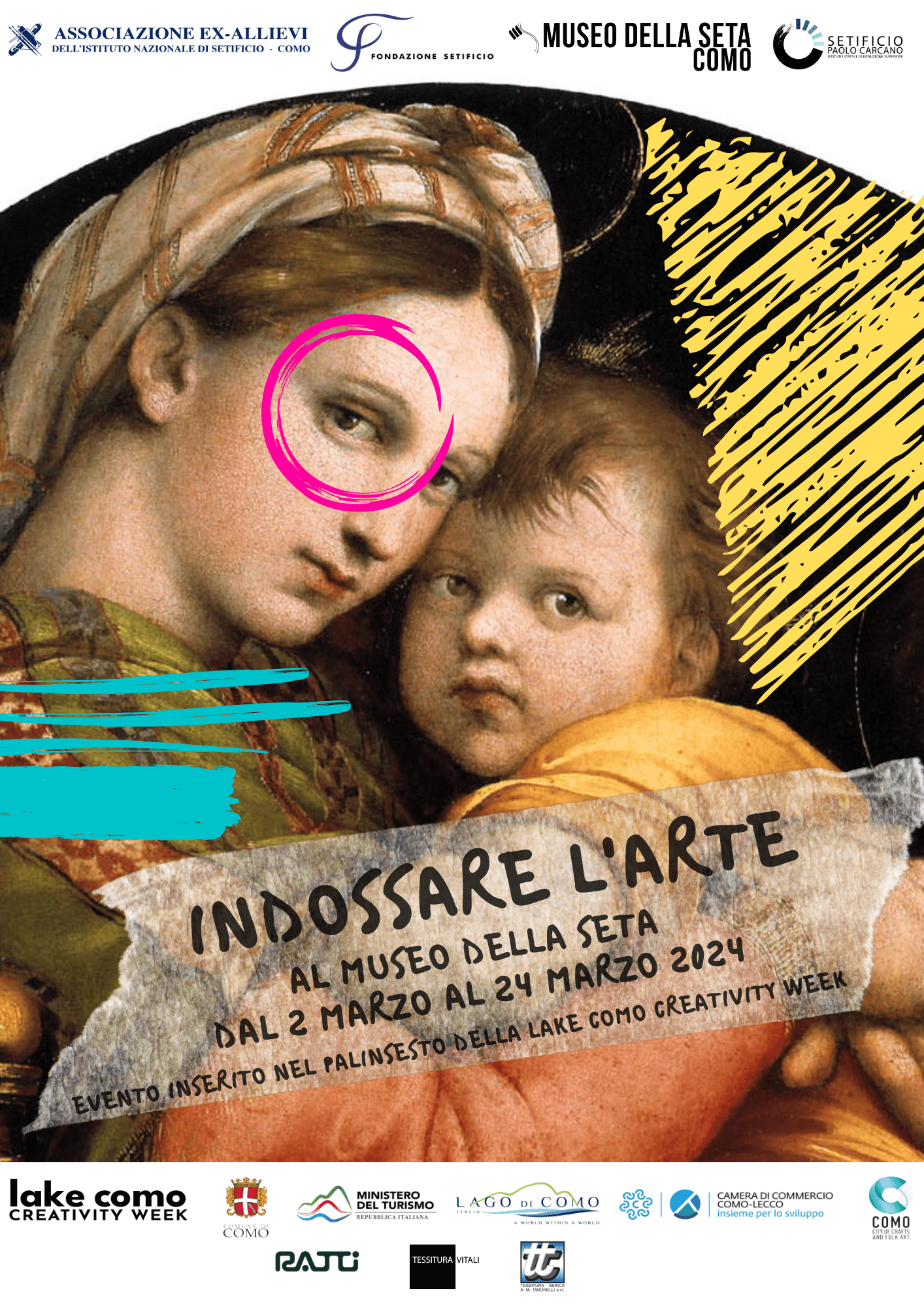 “Indossare l’Arte. Dalle tele dei Maestri una collezione di accessori Moda” riprende un lavoro e un contest proposto dall’Associazione Ex Allievi del Setificio di Como APS due anni fa, congiuntamente con Fondazione Setificio e il Museo della Seta, rivolto alle studentesse e agli studenti dell’Istituto Setificio Paolo Carcano, indirizzo Sistema Moda. Il percorso ha visto lo studio e l’indagine dei capolavori dell’arte italiana, prevalentemente del Rinascimento con qualche incursione nel primo Ottocento, e ha messo in luce un mondo di idee e di suggestioni, concretizzate in studi di fattibilità tecnica per tessuti Jacquard, sfruttando le opportunità fornite dai laboratori del Setificio.