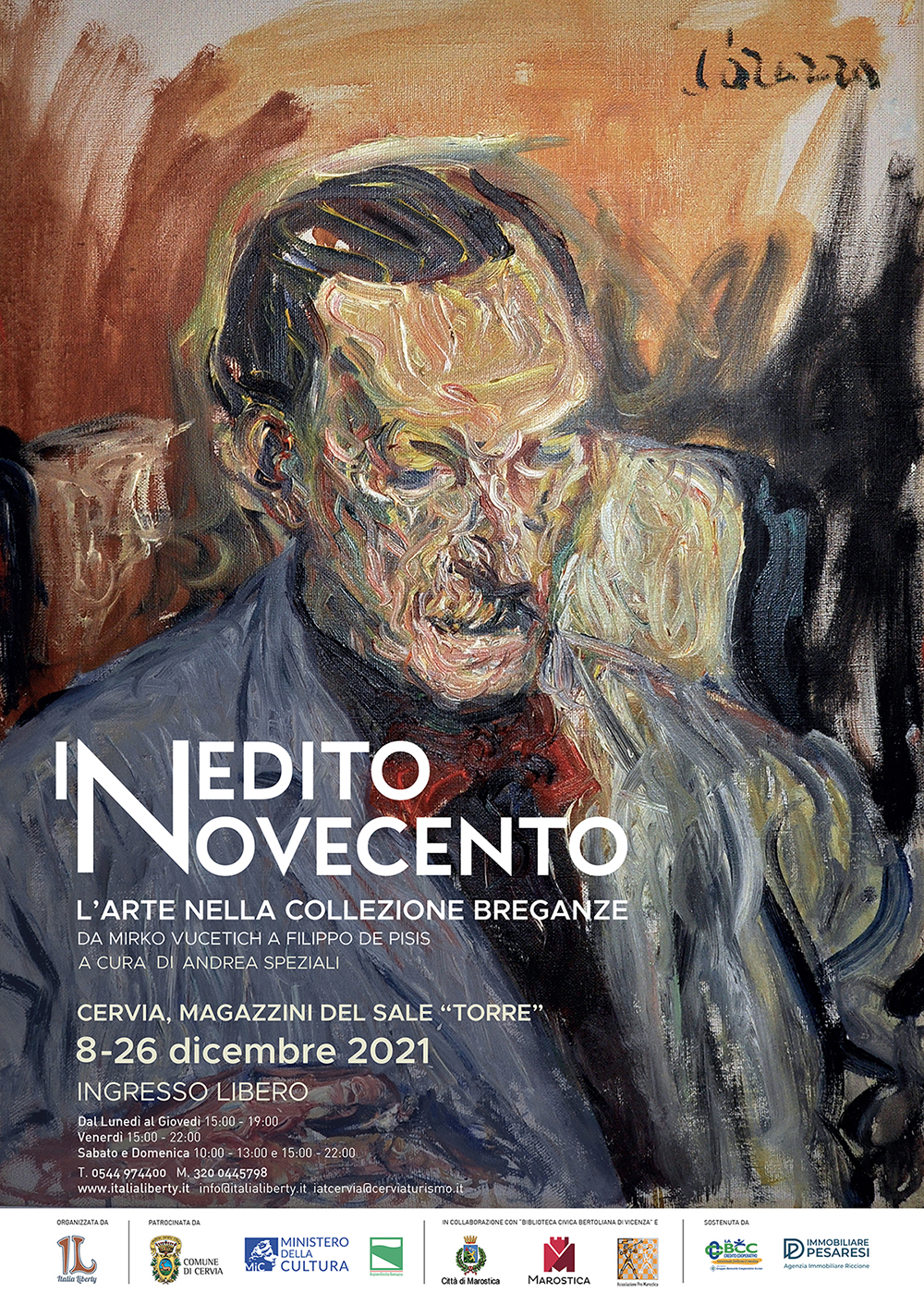 Nella fascinosa cornice dei Magazzini del Sale a Cervia da mercoledì 8 dicembre fino a domenica 26 dicembre 2021 ha sede la mostra “Inedito Novecento. L'arte nella Collezione Breganze da Mario Mirko Vucetich a Filippo De Pisis”, organizzata dall'associazione Italia Liberty, presieduta da Andrea Speziali, con il patrocinio del Comune di Cervia, Ministero della Cultura e della Regione Emilia-Romagna.