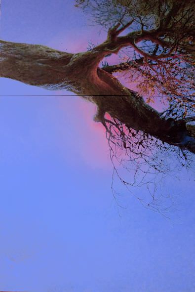 Interessante sul piano stilistico si rivela anche la scelta di frazionare le immagini in sezioni separate conferendo alla composizione un andamento fortemente dinamico. Come sequenze di un filmato la struttura degli alberi viene separata suggerendo all’occhio dell’osservatore di andare oltre il perimetro fisico della tela, i “fotogrammi” si espandono e i soggetti rappresentati si allungano oltremodo verso l’alto accentuando la loro maestosa presenza.