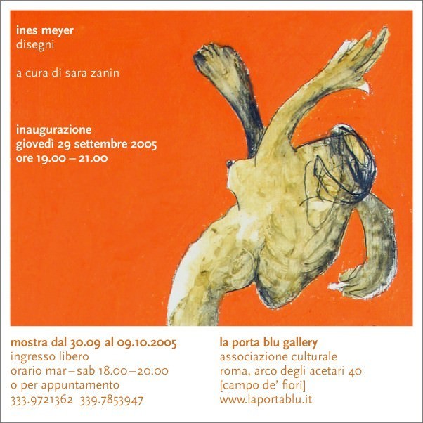 Per la sua prima personale in Italia l’artista Ines Meyer (Germania, 1969), presenta una selezione di disegni ispirati ad un mondo esistenziale di coinvolgente intimità che rivelano un’inclinazione mitica e spirituale.