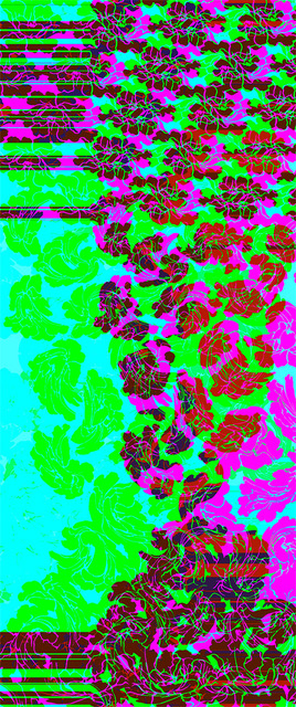 Ghioldi per la realizzazione delle sue opere ha attinto da uno studio compiuto sui colori dello stemma della città, sulle piante e sui giardini presenti nel territorio per realizzare due grandi stoffe che si dispiegano dal soffitto al pavimento, i cui soggetti sono stati rivisti attraverso app di smartphone e glitch generati dai processi di stampa.