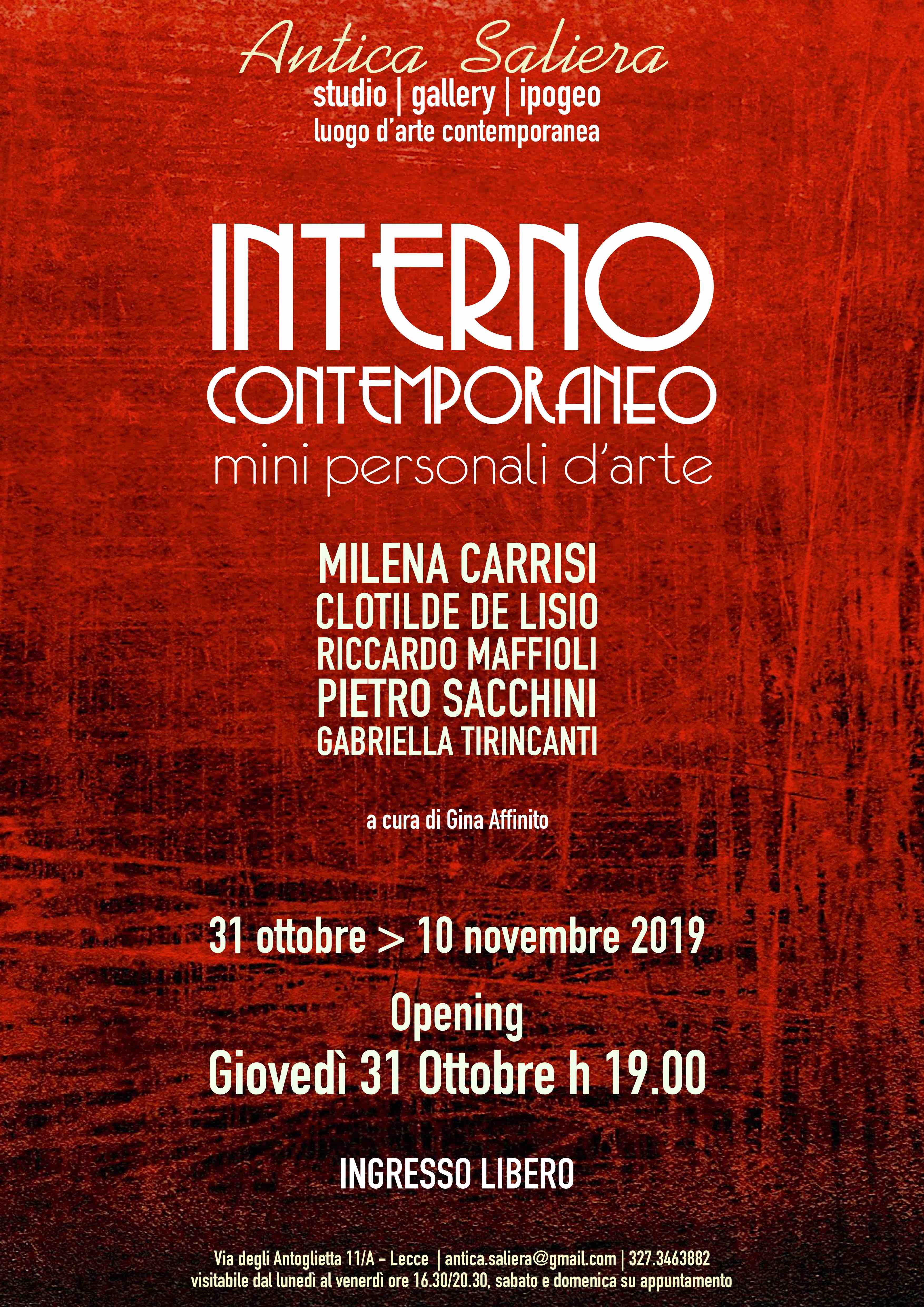 L’esposizione è curata da Gina Affinito e si articola nei sue piani di Antica Saliera in Lecce. L’inaugurazione è prevista per giovedì 19 settembre 2019 ore 19.00