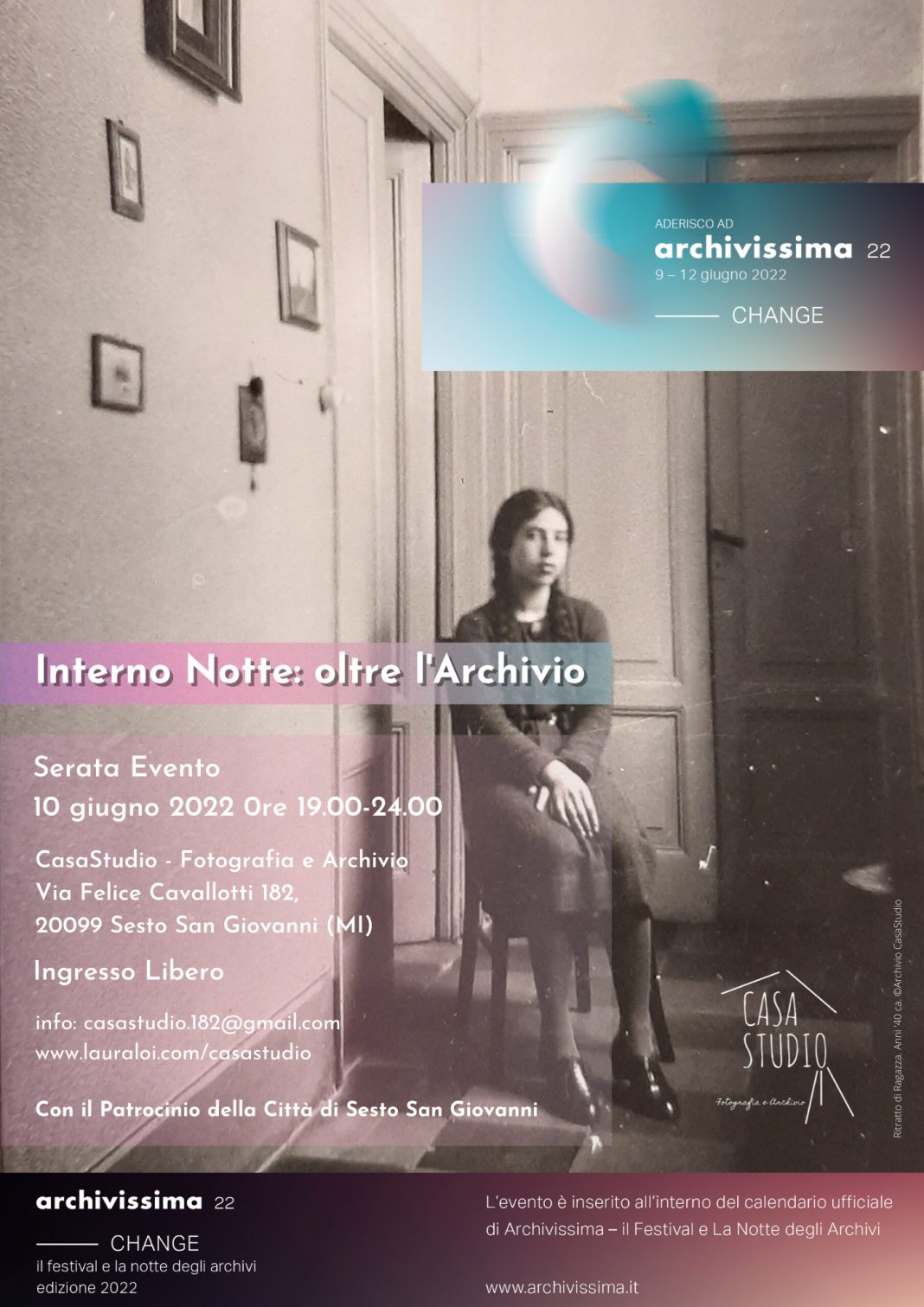 CasaStudio porte aperte per La Notte Degli Archivi del 10 giugno. Un appuntamento speciale che ogni anno vede la partecipazione di centinaia di archivi italiani all’interno del Festival organizzato da l’Associazione Archivissima. Una visita/incontro alla scoperta dei materiali custoditi, della loro acquisizione, reinterpretazione, fruizione e studio, declinata al tema di quest’ultima edizione: Change.