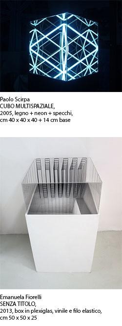 I sei artisti invitati, esponenti di generazioni e linguaggi diversi, sembrano tutti dei grandi escogitatori di artifici visivi, dei geniali sperimentatori di combinazioni improbabili. Paolo Scirpa (Siracusa, 1934), ad esempio, progetta pozzi luminosi ("Ludoscopi") che aprono finestre su mondi apparentemente infiniti. Paolo Masi (Firenze, 1933) impiega lastre di plexiglass trasparenti e dipinte, suscitando luoghi che giocano sull'ambiguità tra dentro e fuori, emozione e ragione, parvenza e visionarietà. Entrambi mirano a modificare i connotati dello spazio, introducendo una sorta di "poetica dello spostamento" o del rovesciamento, se non addirittura la strategia del "tromp l'oeil", con il suo fascino spirituale dell'inganno.