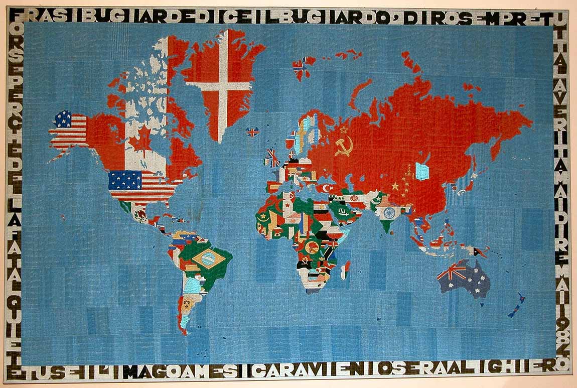 “Il lavoro della mappa ricamata è per me il massimo della bellezza. Per quel lavoro io non ho fatto niente, non ho scelto niente, nel senso che il mondo è fatto com’è e non l’ho disegnato io, le bandiere sono quelle che sono e non le ho disegnate io, insomma non ho fatto niente