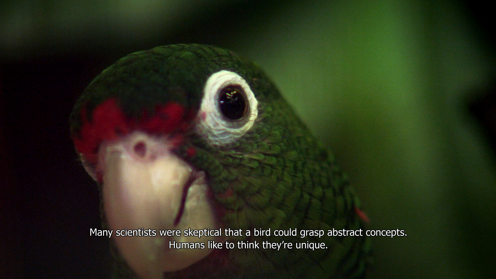 È il corpo nella sua dimensione affettiva e sensoriale a essere interpellato come territorio di indagine, un corpo disposto a rinunciare alle prerogative umane che si esprimono tramite la postura, lo sguardo, o il discorso: così la figura antropomorfa nel dipinto di Carla Grunauer si piega mollemente su se stessa, abbandonando il sicuro orizzonte della postura eretta, per andare a esplorare il terreno “con il naso prima che con gli occhi”. Nelle fotografie di Bruna Esposito sono invece occhi appartenenti a diverse specie di pesci ravvicinatissimi, a interpellare lo spettatore, invertendo la traiettoria dello sguardo. Nella videoproiezione di Allora & Calzadilla a prendere la parola sono i pappagalli Amazona Vittata in via di estinzione, mentre il lavoro di Jonathas de Andrade evoca le interazioni personali tra umani e non umani su cui si fondano le culture animiste, così come la violenza, spesso edulcorata da sentimentalismi di facciata, che opera costantemente all’interno di un sistema dominato dagli esseri umani. In alcuni casi gli artisti propongono ipotesi di contatto fusionale o di ibridazione fra i corpi (Marta Roberti, Valentina Furian, Bekhbaatar Enkhtur), che si muovono, osservano ed esplorano il mondo come cetacei, rettili o uccelli (Elena Mazzi, Helena Hladilova, Calixto Ramirez, Gaia de Megni). Non mancano infine prospettive che indagano criticamente il desiderio umano di dominare e addomesticare l’alterità animale, oggetto passivo di un’affettività unidirezionale (Michela de Mattei, Lia Chaia). Ad essere messe in discussione sono le gerarchie speciste dominanti, che tendono a relegare le specie non umane in una posizione di subalternità, negando loro la possibilità di affermarsi come soggetti a cui guardare per sviluppare le potenzialità di un pensiero non antropocentrico.