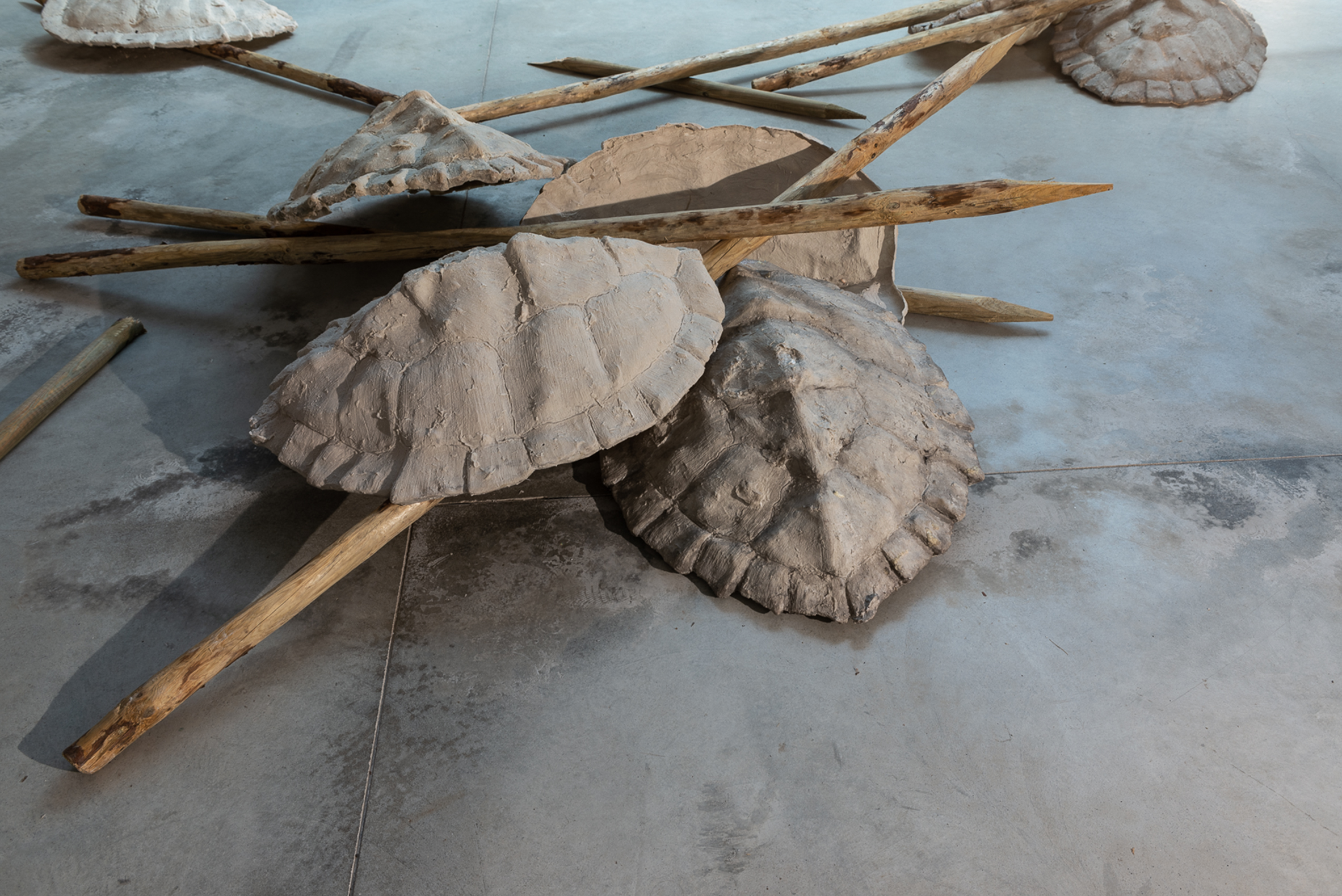 Come scrive Andrea Dusio, che accompagna l’esposizione con un testo inedito: “ La mostra configura un ribaltamento narrativo, in cui è la natura a osservare con sguardo evoluzionista e anti-finalistico l'intervento dell'uomo nell'equilibrio del proprio sistema e nella propria storia. Mater Natura assume così le paure arcaiche che l'uomo ha di fronte all'incognito, e pare organizzarle, compenetrarle e comprimerle attraverso una propria tassonomia. (...) I segni di questa guerra endemica sono disseminati nello spazio espositivo, costituendo allo stesso tempo un reperto etno-antropologico e il segno dell'invasività di una specie che appare destinata a riscrivere la percezione stessa della Natura, svelandone la forza sterminatrice, operante in maniera meccanica, senza apparente esercizio dell'arbitrio, come un'incidente dell'evoluzione che determina la prevalenza di un'ottusa e bieca volontà di distruzione.”