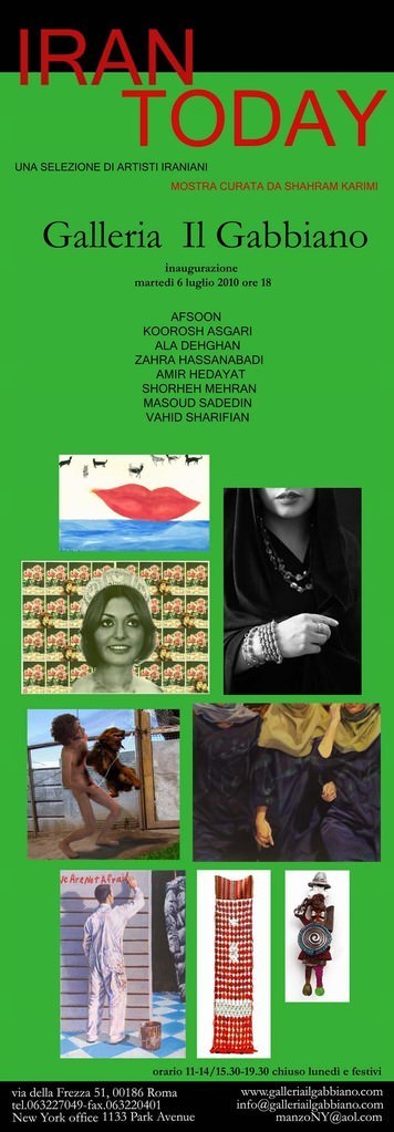 Iran Today: una mostra concepita come un percorso tra opere diverse per offrire un panorama dell’arte contemporanea iraniana; raccoglie le opere di otto artisti di diversa notorietà e provenienza, tutti però capaci di rappresentare in modo diretto e semplice la loro identità culturale.