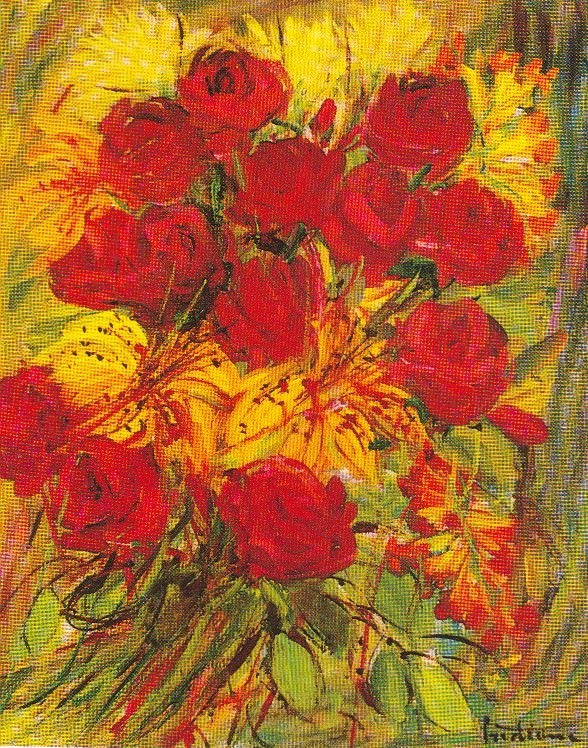 Soggetto particolarmente caro ed esplorato sono le composizioni floreali, i “fiori di Iridiana”, un infinito arabesco di corolle e petali nel vento, scaturito quasi come un arpeggio metafisico da un lungo vissuto nell'arte e da evocazioni del tempo andato nella sua terra natia.