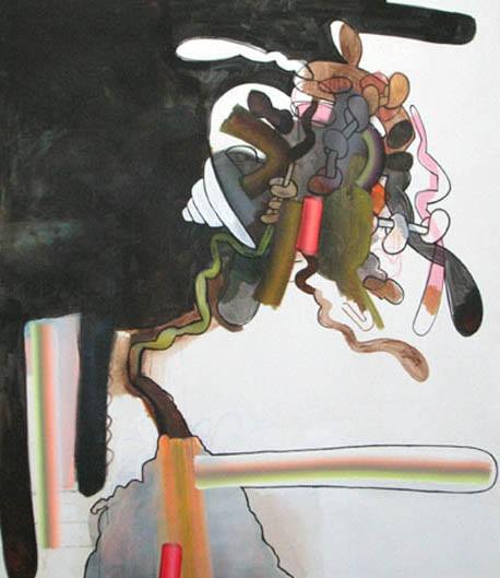 La mostra presenta una serie di quadri recenti di grande formato, accompagnati da alcuni lavori su carta, dove elementi astratto - geometrici e forme che rimandano a frammenti del reale si compongono e si espandono in grovigli ed intrecci. Gli elementi convivono e si costruiscono in strutture fantastiche, luoghi immaginari dove l'occhio si incunea all'interno di percorsi sinuosi e tubolari. Il colore, dal sapore chiaramente evocativo, steso per velature e sovrapposizioni, spesso vive autonomamente rispetto alle forme dai contorni definiti, con le quali però si accompagna in una sorta di esplosione.