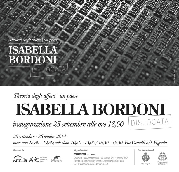 Giovedì 25 settembre ore 18, Dislocata spazio espositivo, Via Cantelli 3/1, Vignola (MO)