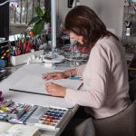Le 16 opere, tutte realizzate tra il 2020 e il 2021 con la tecnica dell’acquerello, presentano diversi formati, forme e carte, che ben esprimono l’accurata ricerca tra arte e sostenibilità: 6 tonde, 6 quadrate, 4 rettangolari, grandi e piccole, su carta Arches oppure Khadi indiana, 100% cotone e 100% riciclata.