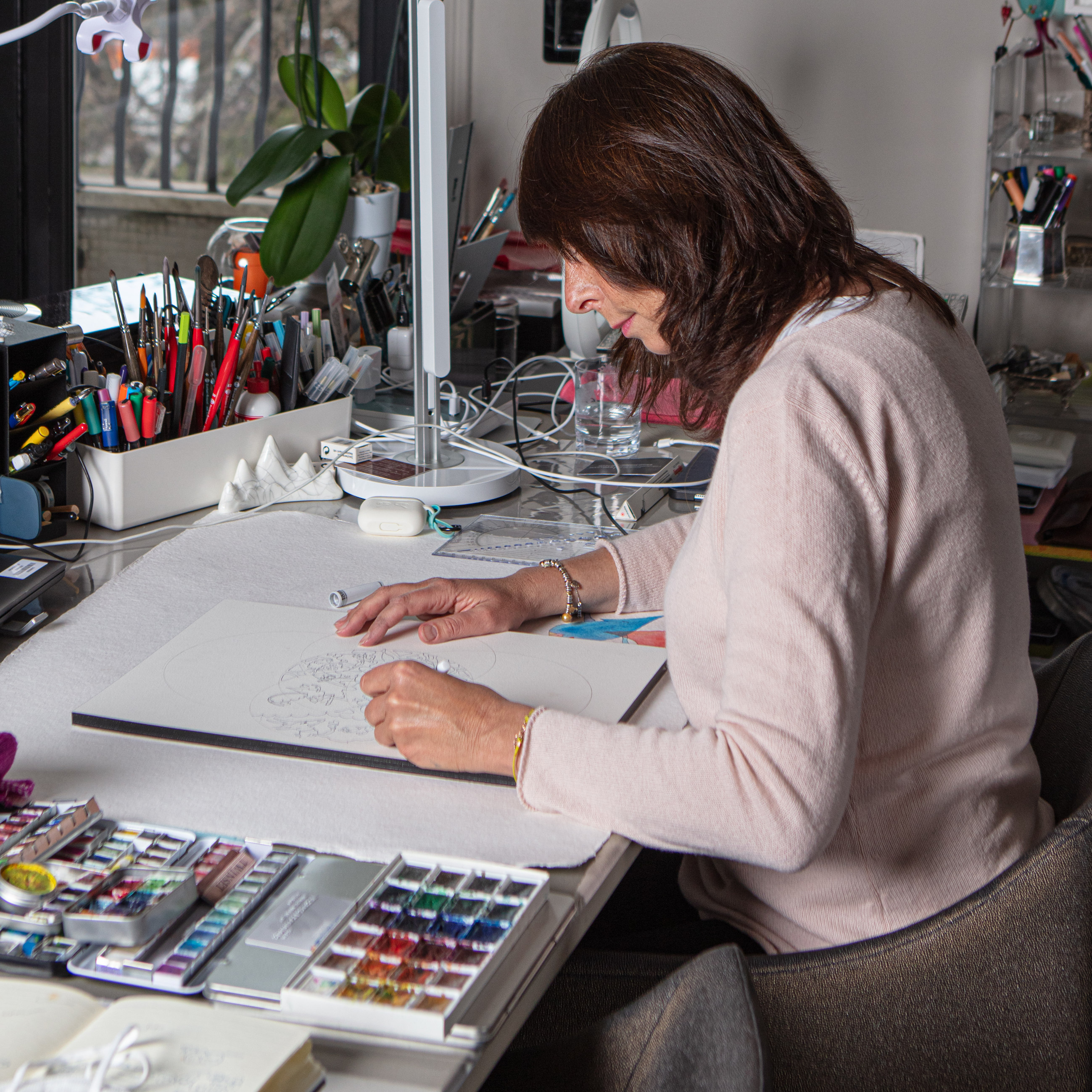 Isabella Mandelli vive e lavora tra Milano e Rapallo, dove ha i suoi atelier.