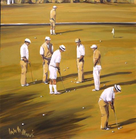 L'uomo è al centro, i movimenti sono equilibrati e dinamici, liberi nello spazio; l'artista fissa l'attimo sulla tela e tutto si ferma in un' atmosfera di tempo quasi sospeso.