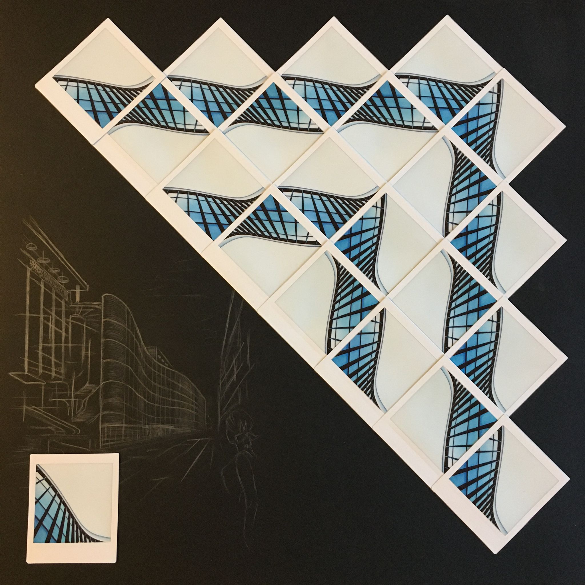 Le tre serie in mostra — Antropico, Bagnanti, Origami — declinano questa stessa poetica in direzioni diverse, condividendo un unico supporto: le pellicole Fuji Instax, con la loro chimica imprevedibile e la loro struttura fragile. Biddau non corregge questi limiti: li attraversa, trasformando l’imperfezione del mezzo nel centro stesso del linguaggio.