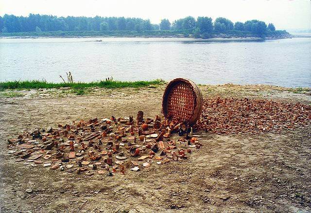 La mostra si snoda attraverso gli spazi aperti e ampi del museo, a partire dal cortile dove sono installate le 24 steli dell’opera A-Temporali, sculture in terrecotte dalle sommità variamente modellate, sagomate, incise o sfrangiate che si pongono come misteriose chiavi rivolte al cielo. Il giardino è segnato dalla presenza della Foresta impugnabile, figure in terracotta plasmate dalle mani dell’artista e che ne conservano le impronte. Quindi La scernita, un grande setaccio adagiato sulla sabbia davanti e dietro al quale stanno miriadi di piccole sculture in terracotta, ci riporta alle arene del Po alle sue implacabili secche ai “preziosi riporti: pietruzze legni ferri, grumi e sassi.. arsi e riarsi, sommersi emersi e ancora riemersi. Plasmati dall’Acqua e dall’Aria, cotti al sole d’agosto. Strozzati da sabbie e limen nelle giornate di piena e ancora rivoltati e smangiati dal vento e dal tempo”.