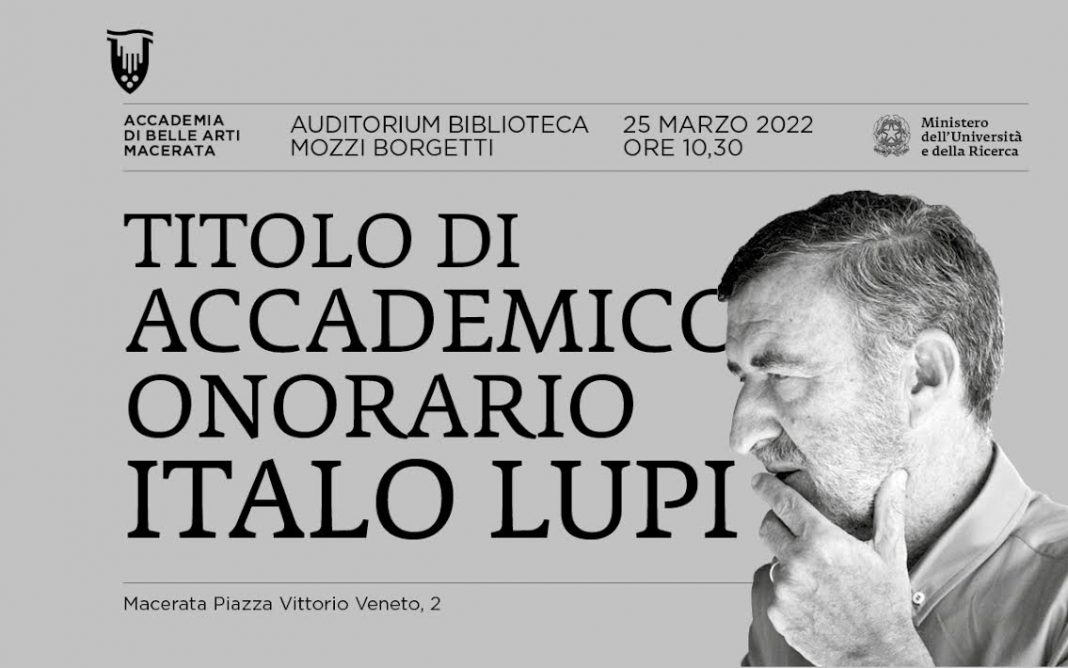 L’Accademia di Belle Arti di Macerata è lieta di annunciare la cerimonia di apertura dell’Anno Accademico 2021/2022 e l’attribuzione Premio al Talento Artistico e Creativo Titolo Accademico Onorario a Italo Lupi, Premio Svoboda, che si terrà negli spazi dell’Auditorium della Biblioteca “Mozzi Borgetti” venerdì 25 marzo 2022, alle ore 10:30, con la Laudatio di Federica Facchini.
